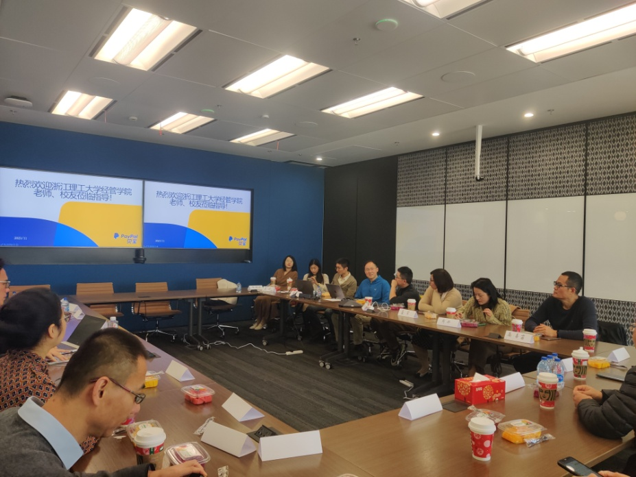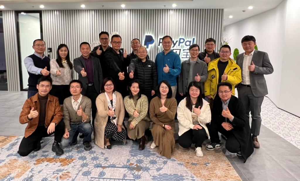 吕品一行走访参观了经济管理学院上海校友会顾问、1996级工业外贸校友金杰校友所在的PayPal(上海)公司,并在PayPal公司的会议室与校友们进行交流座谈,会议由上海校友会薛凡校友主持,十余名上海校友会校友参加。