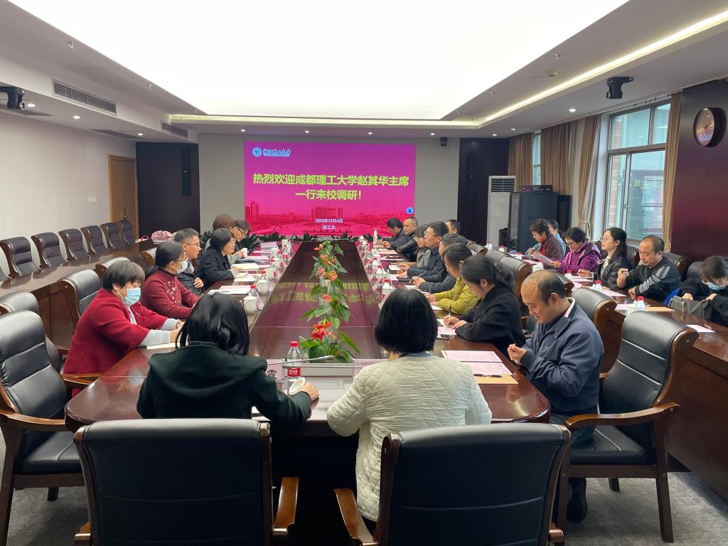12月4日下午,成都理工大学工会常务副主席赵其华、副主席刘兵一行18人赴我校开展调研交流。校工会、妇联常务副主席张信群,材料科学与工程学院分工会主席付飞亚、艺术与设计学院分工会副主席陆宜等参加座谈。