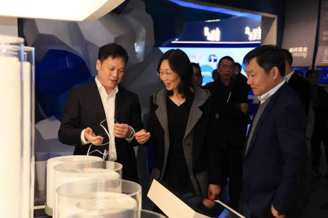 曹国荣热情接待了材料学院一行,并带领前往巨石智能展示中心进行了参观,介绍了企业的发展历程、产业分布、人力资源情况和创新型产品等内容,并期待校企双方更加深入合作,争取打破技术壁垒,推动企业发展。