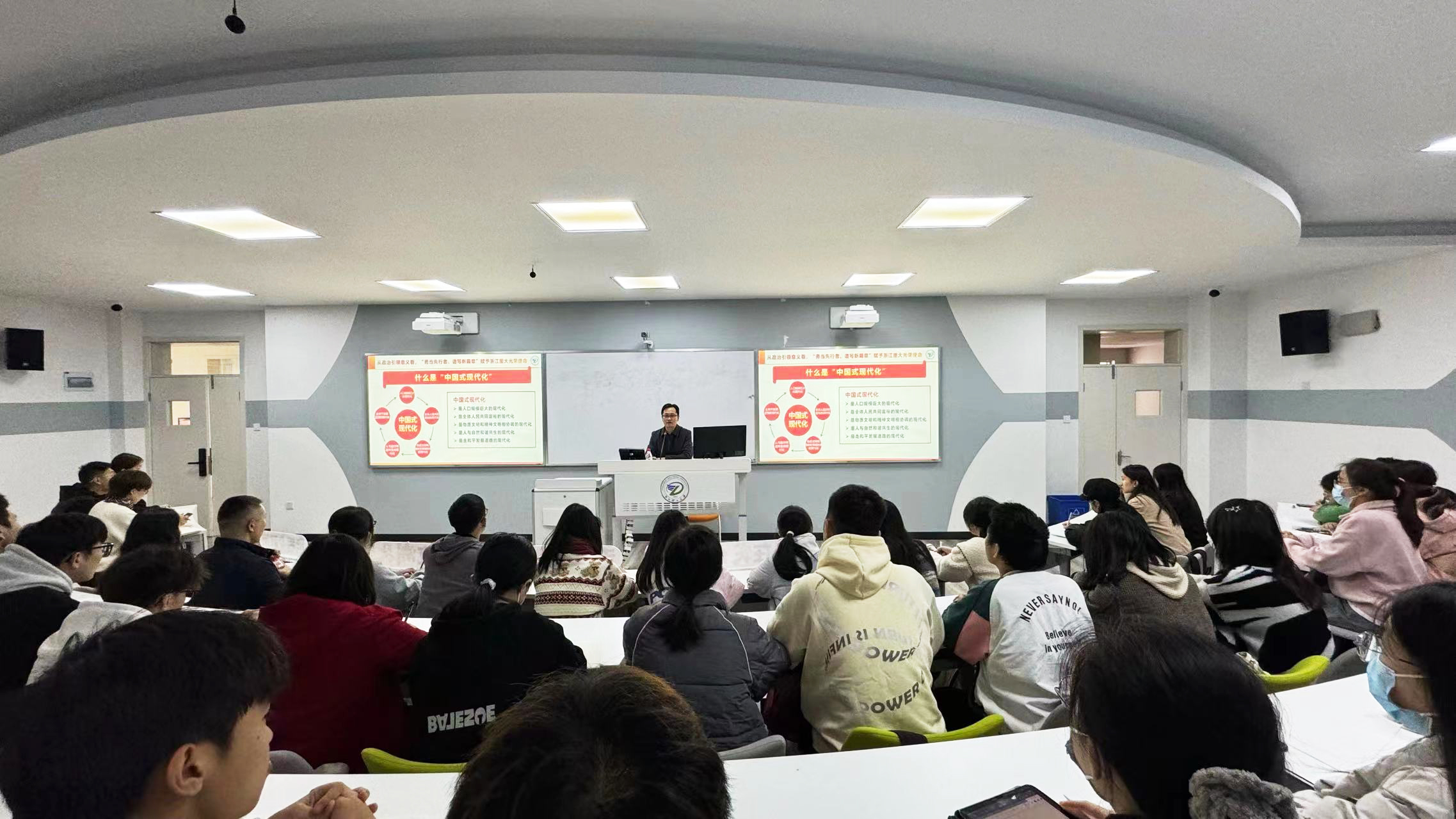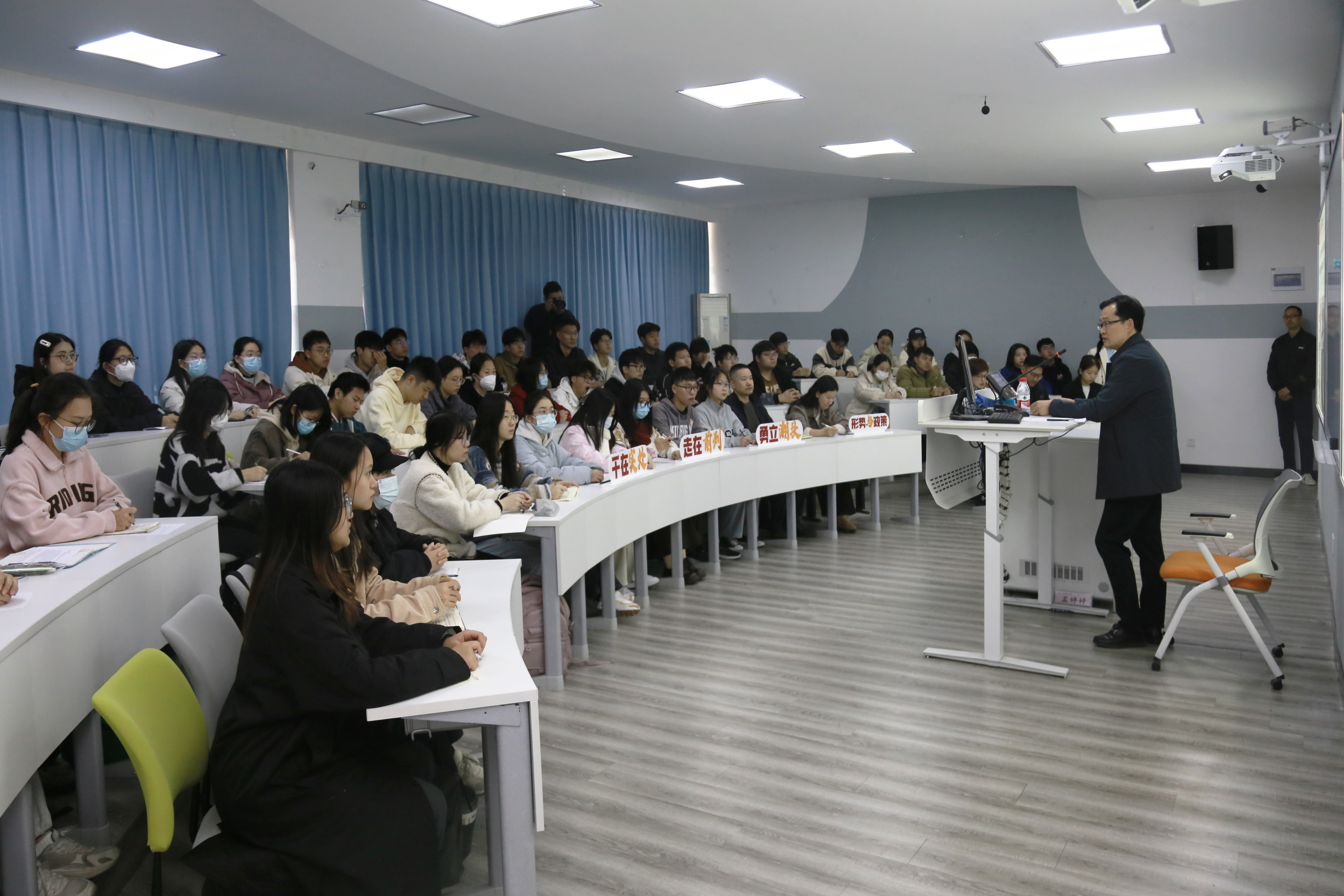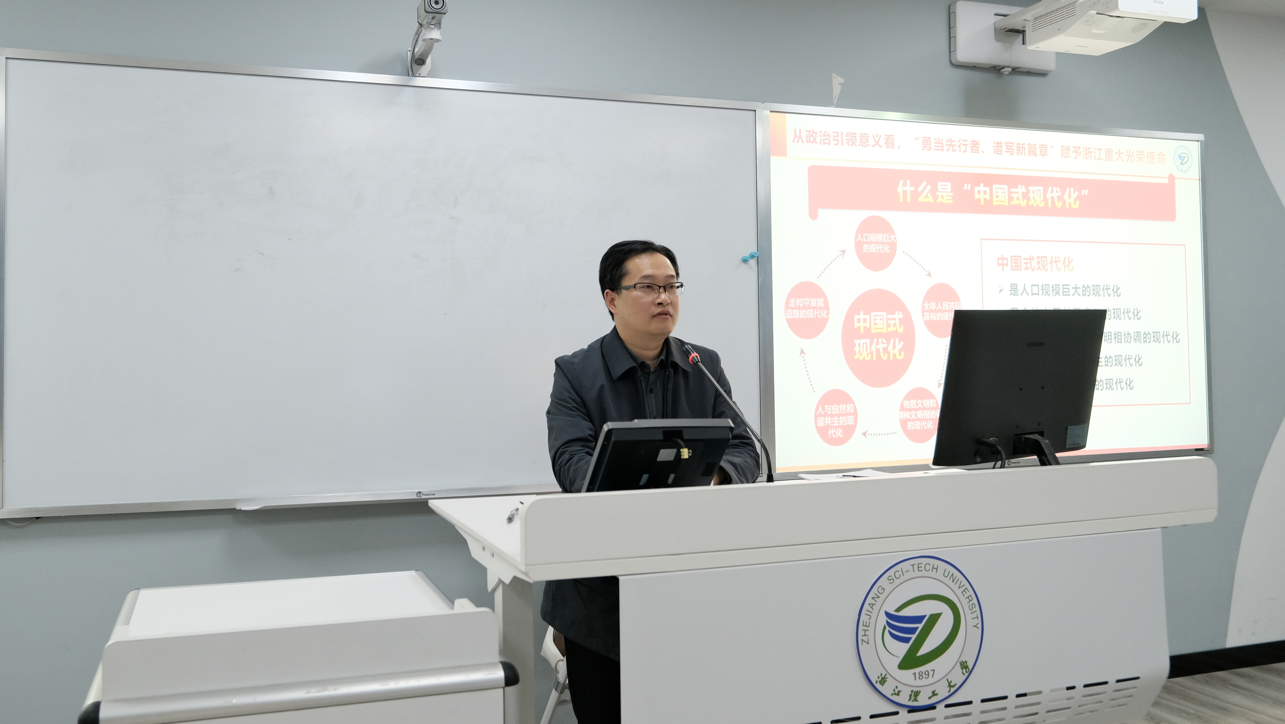 12月8日上午,校党委副书记缪鲁加为生命科学与医药学院学生讲授形势与政策课,宣讲习近平总书记考察浙江重要讲话精神。