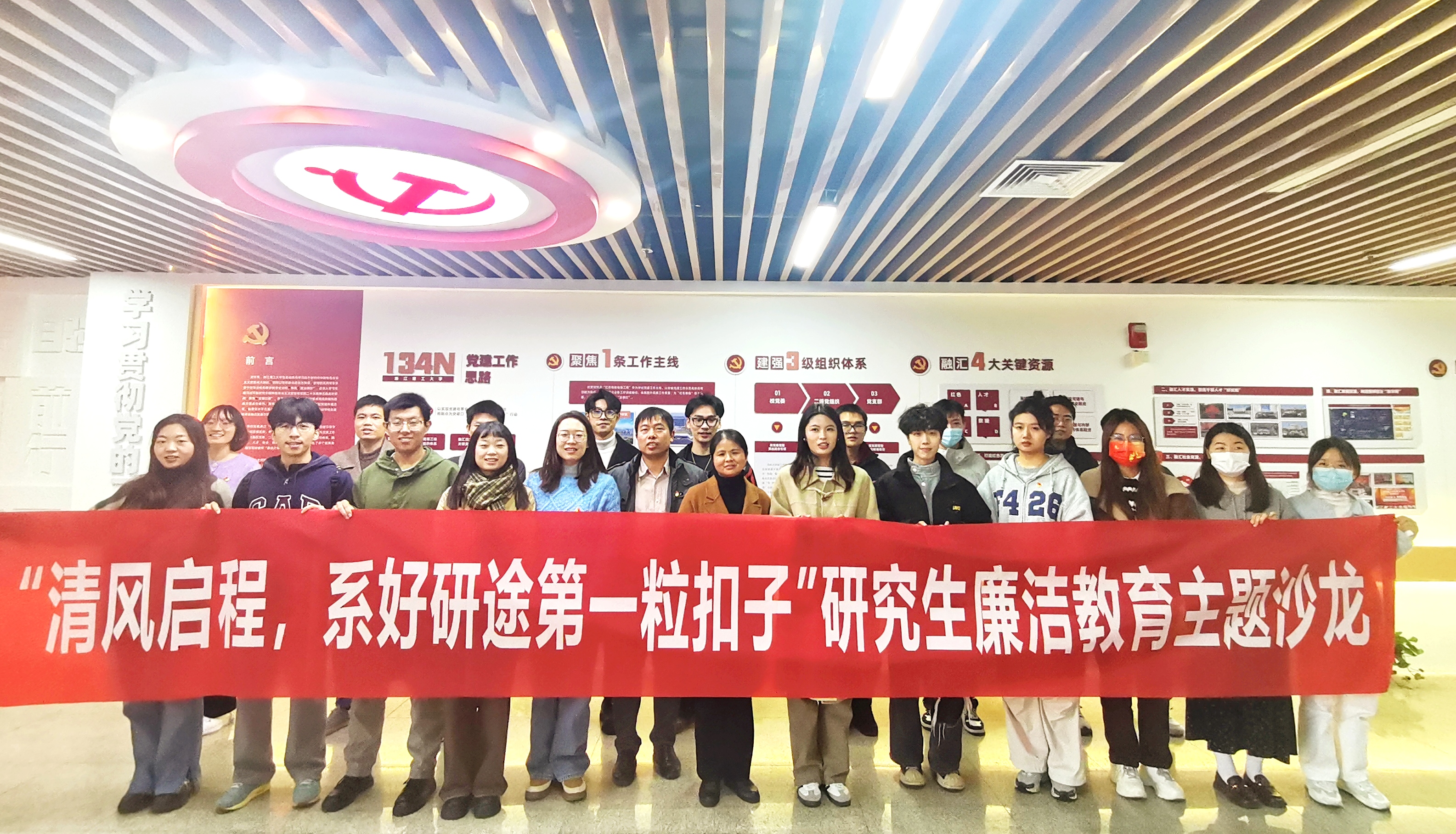 为学习贯彻落实习近平总书记关于新时代廉洁文化建设重要论述,进一步弘扬学廉倡廉践廉的校园文化氛围,教育引导广大研究生在科研阶段增强廉洁诚信意识,筑牢拒腐防变思想防线,12月8日下午,研究生院(研工部)党支部在党群服务中心开展“清风启程,系好研途第一粒扣子”研究生廉洁教育主题沙龙。党委研究生工作部部长冯飞芸出席沙龙,研究生院(研工部)党支部教师代表、各学院研究生代表参加了座谈和交流。