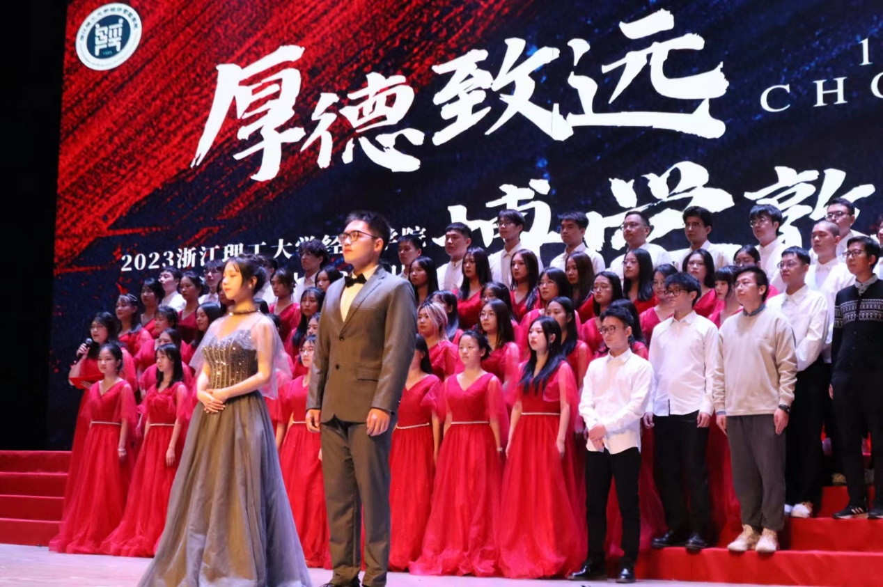 本次合唱比赛围绕“百年初心 历久弥坚”、“风劲潮涌 盛世中华”、“奋楫扬帆 弦歌永传”三个篇章,学院28个团支部带来了12首曲目,学生们将诗歌朗诵、书法、武术、手语等元素融入歌曲,形式多样、内容丰富。《歌唱祖国》《没有共产党就没有新中国》《唱支山歌给党听》……一曲曲红歌展现了一段段鲜活的历史,浙理青年用饱含激情的歌声,唱响了新时代的赞歌。