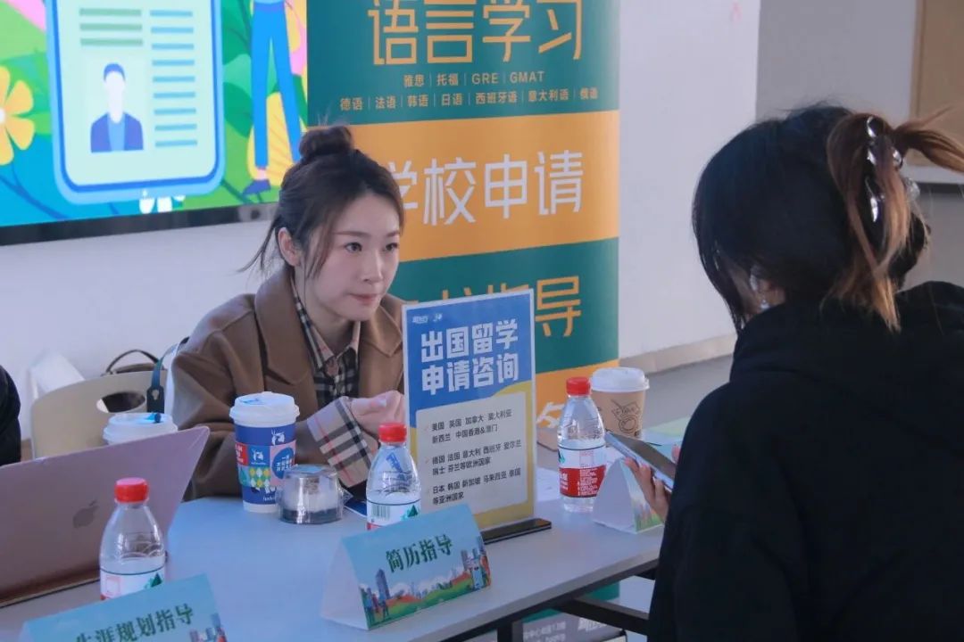 招聘会现场还设置了简历1v1指导、生涯规划指导、出国留学咨询等服务,由资深辅导员以及专家为毕业生在简历制作、面试技巧、意向选择等方面提供帮助,为毕业生提供多层次、全方位的就业服务。