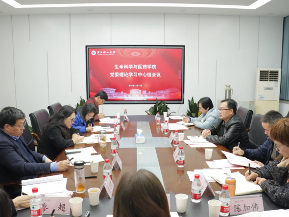 12月11日下午,生命科学与医药学院党委理论学习中心组学习会议在6号楼226会议室召开,主题是学习宣传贯彻习近平总书记关于新时代人才工作的重要论述。校党委副书记缪鲁加到会巡听指导。学院党委理论学习中心组成员参加学习会,会议由学院党委书记王晓军主持。