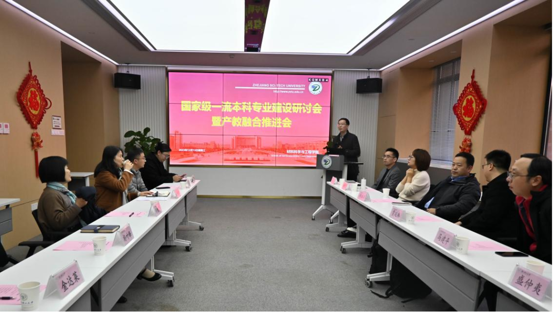 12月13日,国家级一流本科专业建设研讨会暨产教融合推进会在24号楼415报告厅顺利召开。会议邀请了教育部高等学校材料类专业教学指导委员会副秘书长、中南大学材料科学与工程学院贾延琳教授,燕山大学材料科学与工程学院副院长梁永日教授,浙江科技大学生物与化学工程学院盛仲夷教授级高工,浙江古纤道绿色纤维有限公司总经理马建平教授级高工,南都电源动力股份有限公司总工程师、研究院院长相佳媛教授级高工,巨石集团科技发展中心主任顾桂江高级工程师等莅临指导。校研究生院院长、材料科学与工程专业负责人傅雅琴教授,校教务处副处长徐映红教授出席,各系主任及相关负责人参加了会议。会议由学院副院长杨叶锋教授主持。