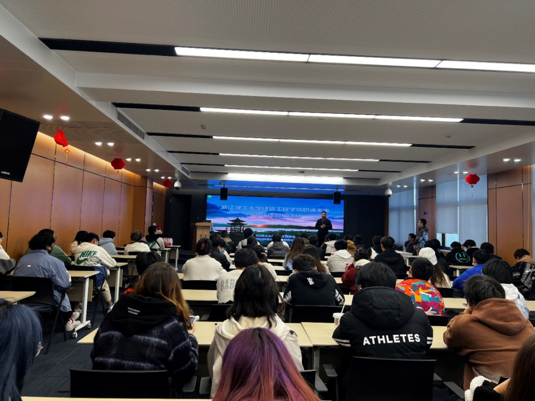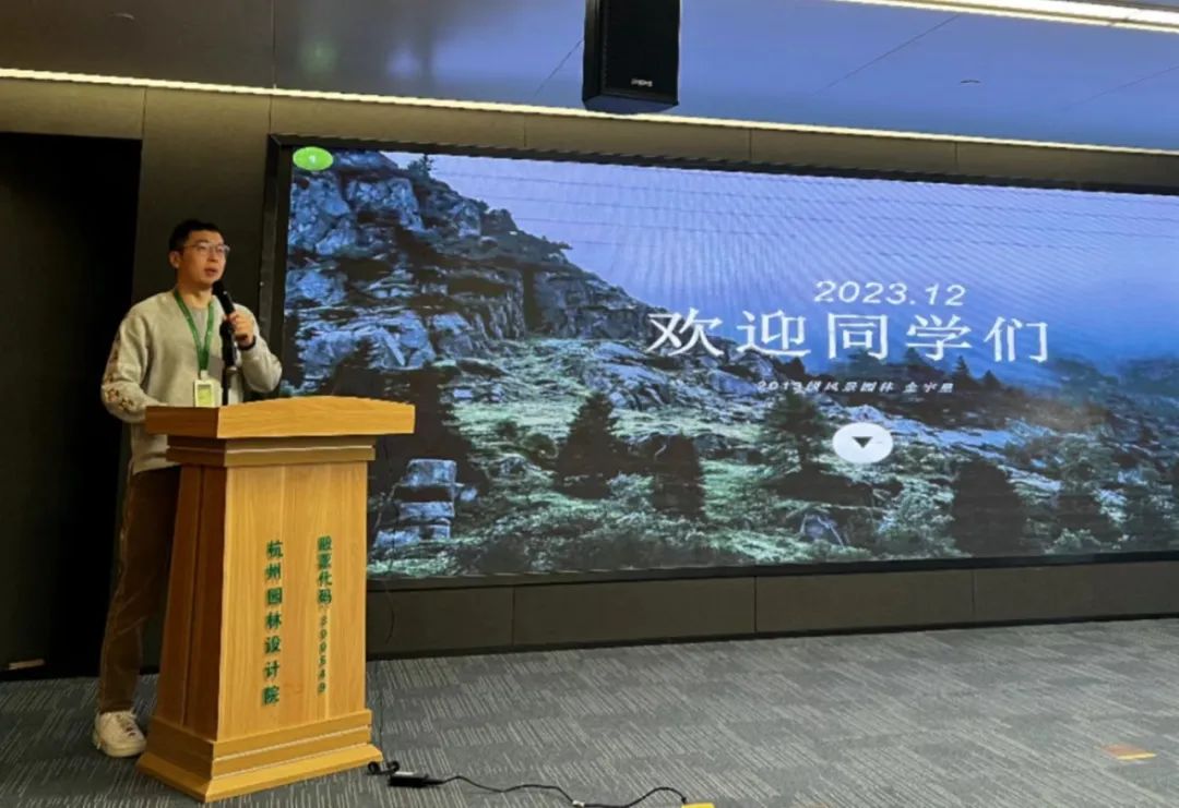 魏成通过精彩纷呈的宣传短片向师生介绍公司架构和“践行生态理念,坚持绿色发展”的发展理念;通过一个个落地项目、一项项荣誉成果,展现杭州园林设计院“一步一脚印,一行一进步”的发展历程。