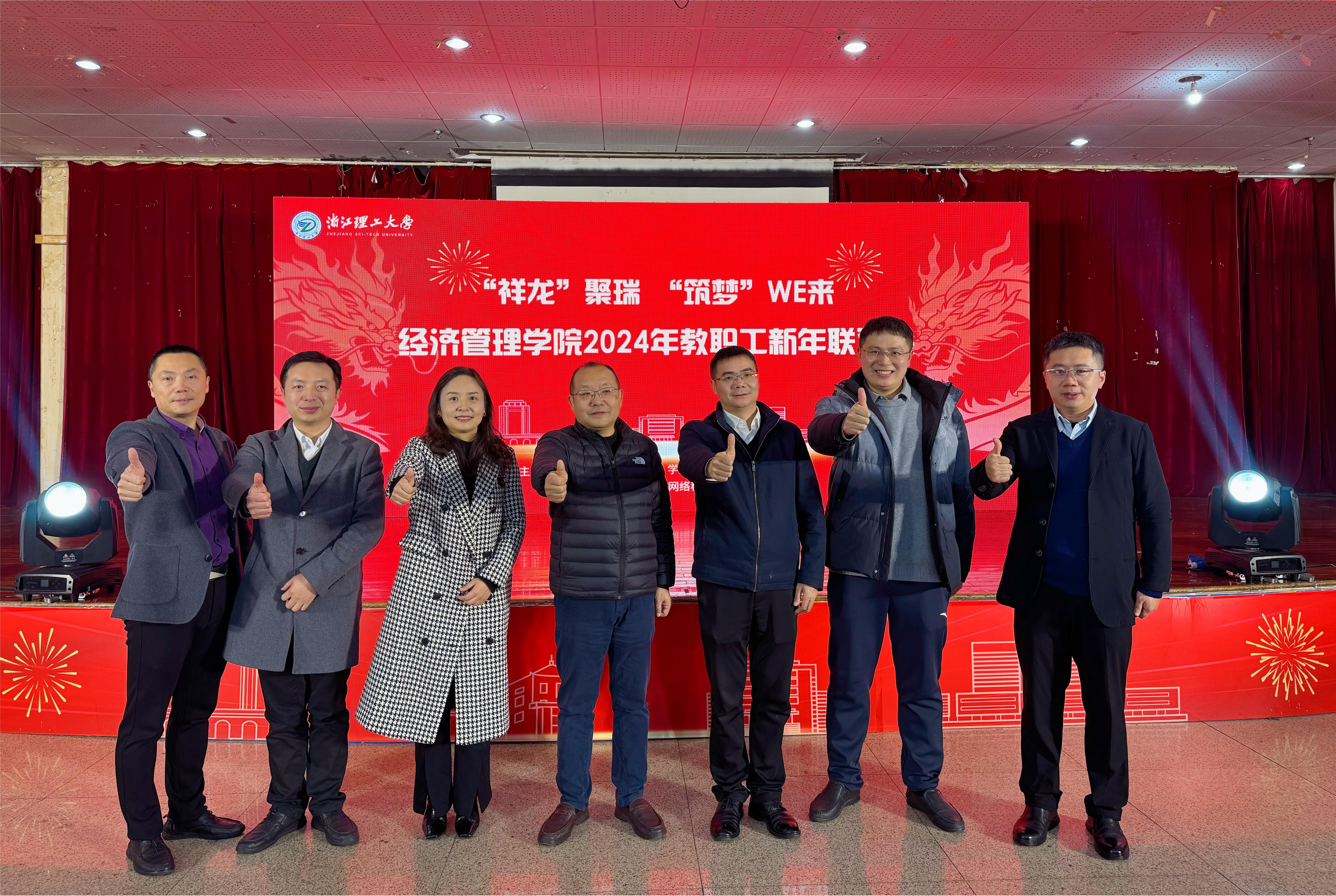 本次“祥龙”聚瑞,“筑梦”WE来——经济管理学院2024年教职工新年联欢会由经济管理学院主办,学院分工会、青促会、综合办共同承办,校友企业杭州筑梦网络科技有限公司友情支持。学院领导班子成员,2008届电子商务专业校友、杭州筑梦网络科技有限公司创始人蓝国强,全体教职工热情参与活动。