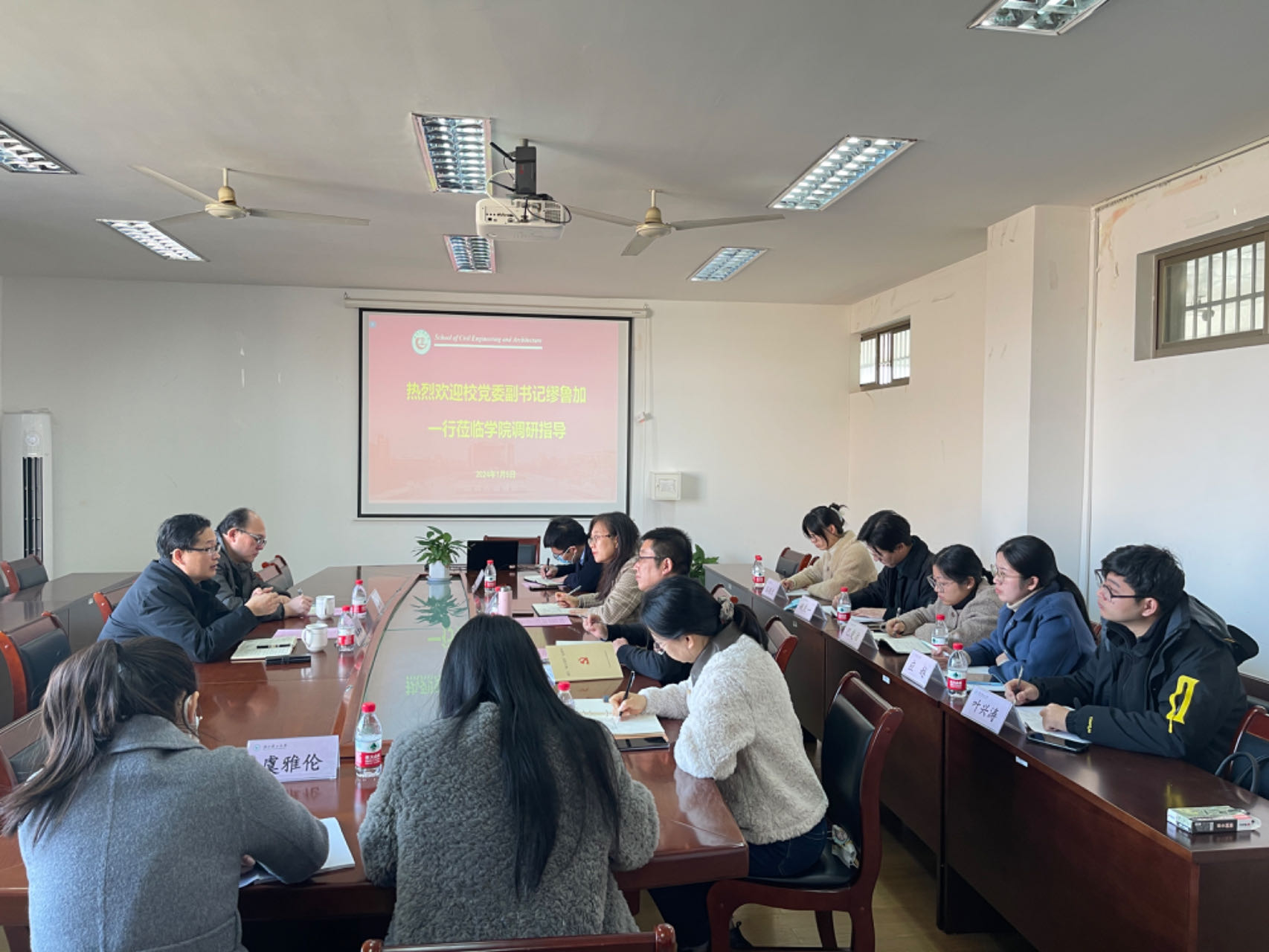 1月5日上午,校党委副书记缪鲁加、党委学工部部长胡琦一行莅临建筑工程学院调研指导。学院党委书记李娜,执行院长俞峰,党委副书记、纪委书记郑磊以及全体辅导员参加座谈会。