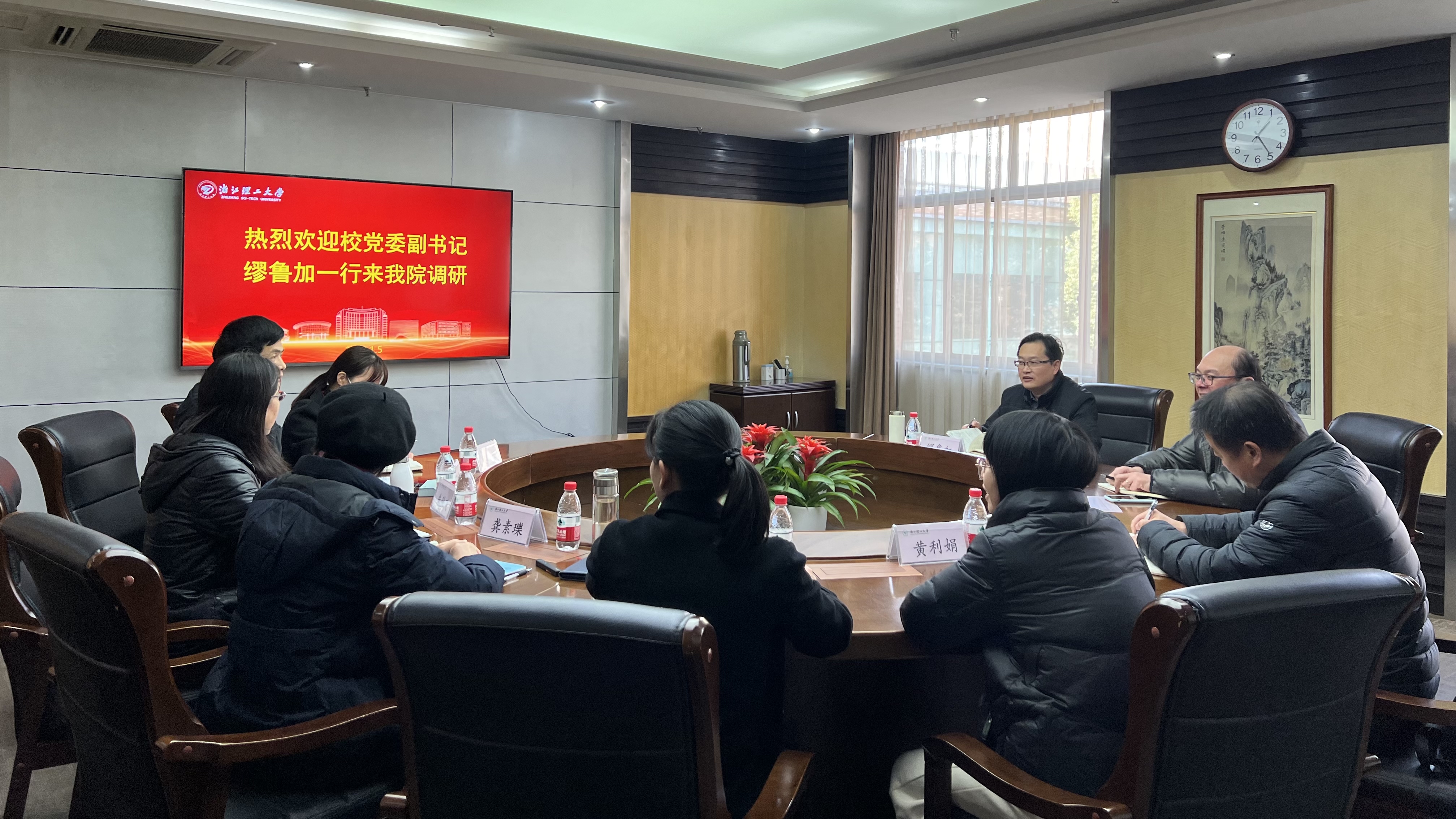 1月5日下午,校党委副书记缪鲁加、党委学工部部长胡琦一行莅临继续教育学院调研指导。继续教育学院党委书记朱秋飞,院长龚素瓅,党委副书记、纪委书记李卫敏,副院长赵新,各科室负责人及全体辅导员参加调研座谈。