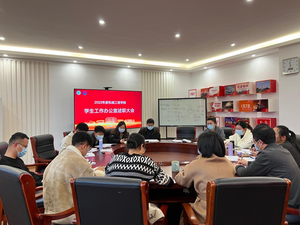 为加强辅导员队伍建设,提升学院学生工作管理服务水平,1月8日下午,2023年度机械工程学院学生工作办公室述职大会在15号楼308会议室举行。学院党委书记苏志俭出席会议,学生工作办公室全体成员参会,会议由学院党委副书记、纪委书记陆秋萍主持。