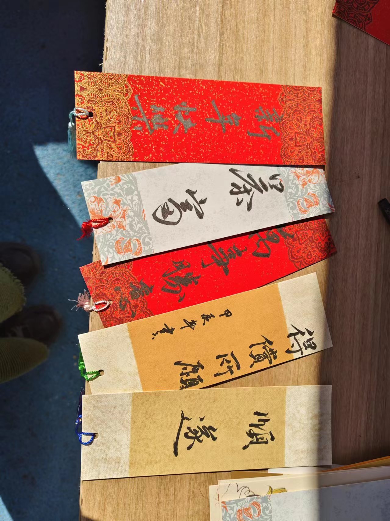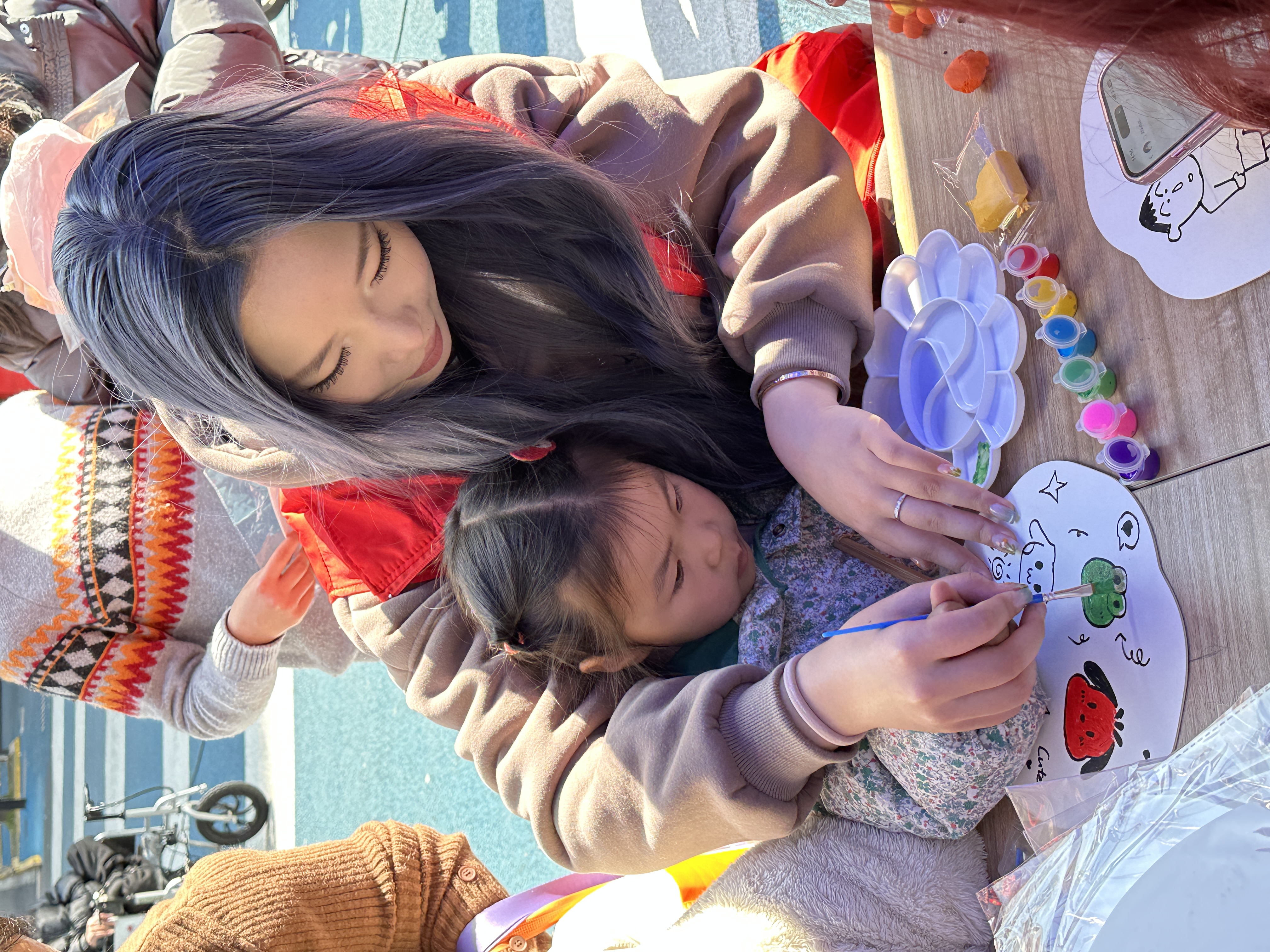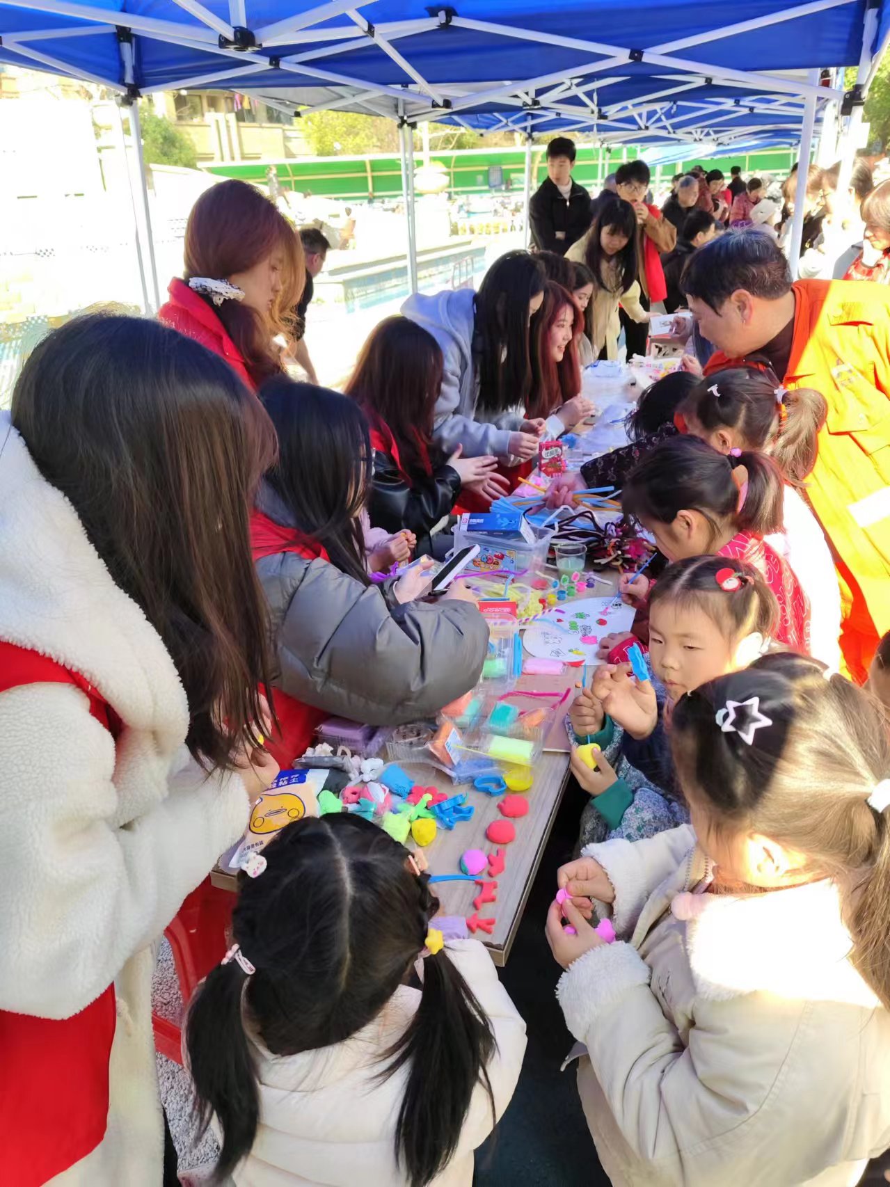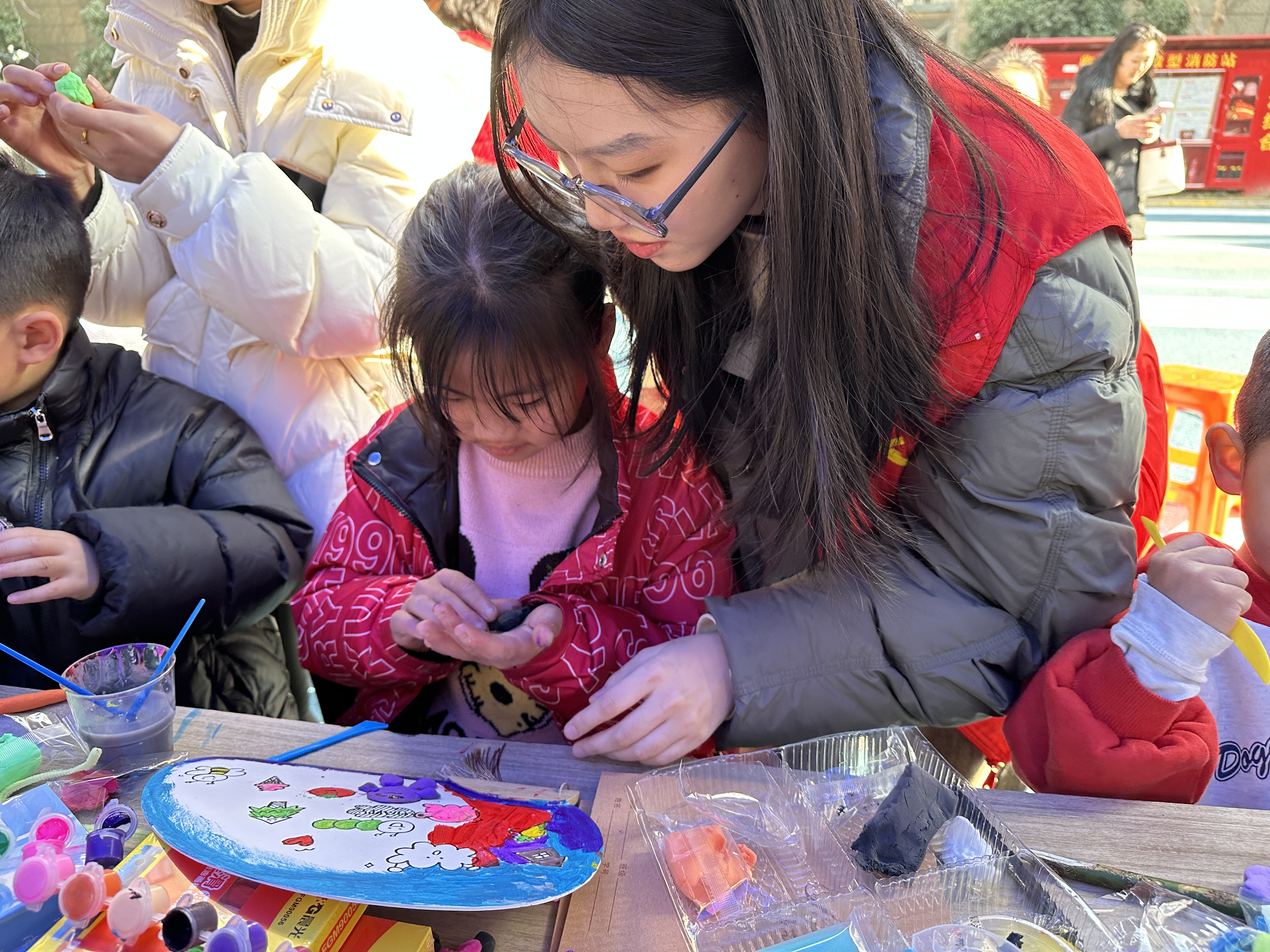 活动现场,志愿者指导社区小朋友用超轻粘土、扭扭棒、颜料进行艺术创作,还设置了摊位书写新年贺签,现场摊位吸引了众多社区居民前来参加。