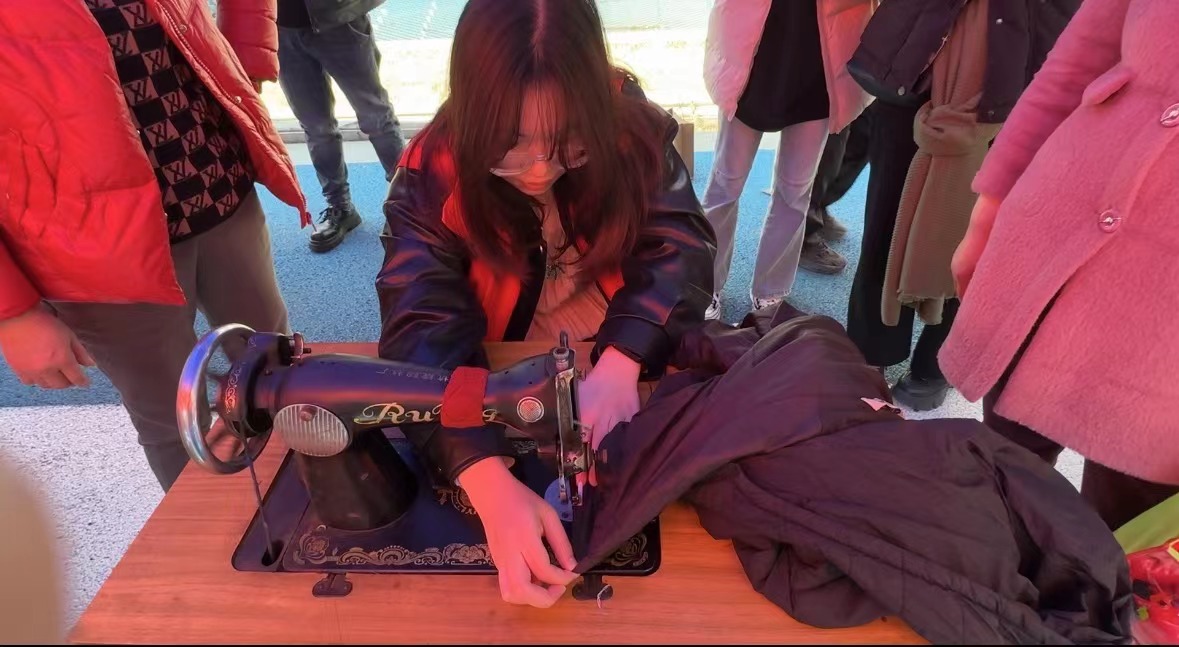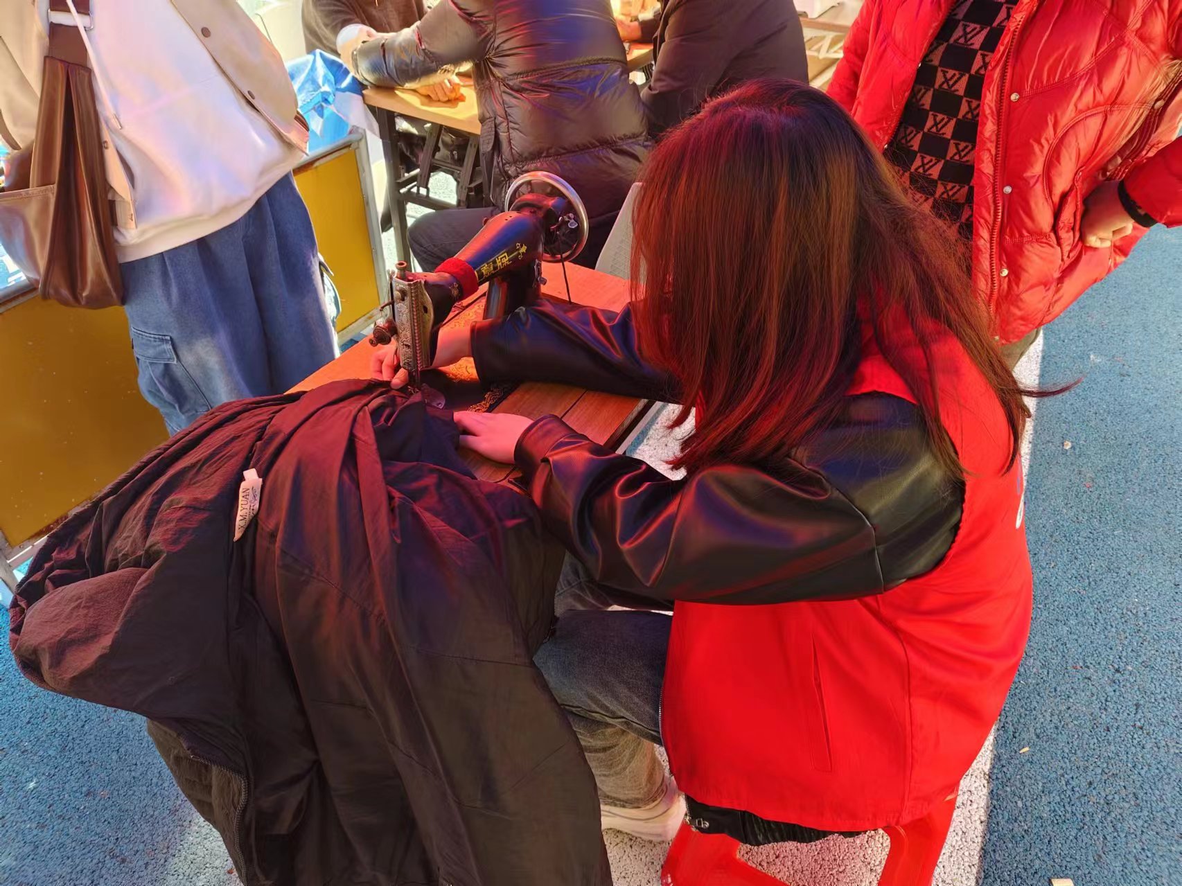 本次志愿服务学院还发挥专业优势将“焕然衣新”艺术工坊搬进社区,开展“巧手改衣”志愿服务活动,为社区居民进行旧衣改造和衣物修补,方便居民日常生活。
