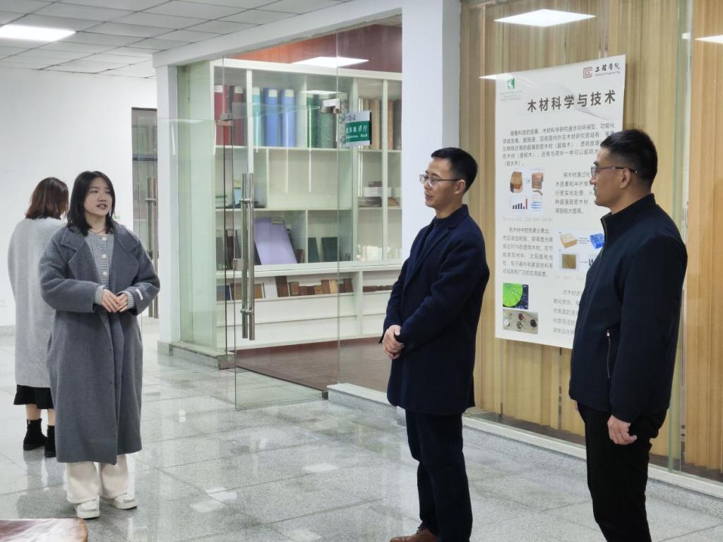 浙江农林大学化学与材料工程学院党委副书记张付安携学院学工团队热情接待,带领参观了浙江农林大学国家木质资源综合利用工程技术研究中心,观看了化材学院的木质标本和特色木质录取通知书等特色展品,参观了学院的重点实验室,了解了化材学院在科研方面的最新进展成果,展示了化材学院在木质材料研究方面的深厚底蕴和教育教学方面的突出成效。