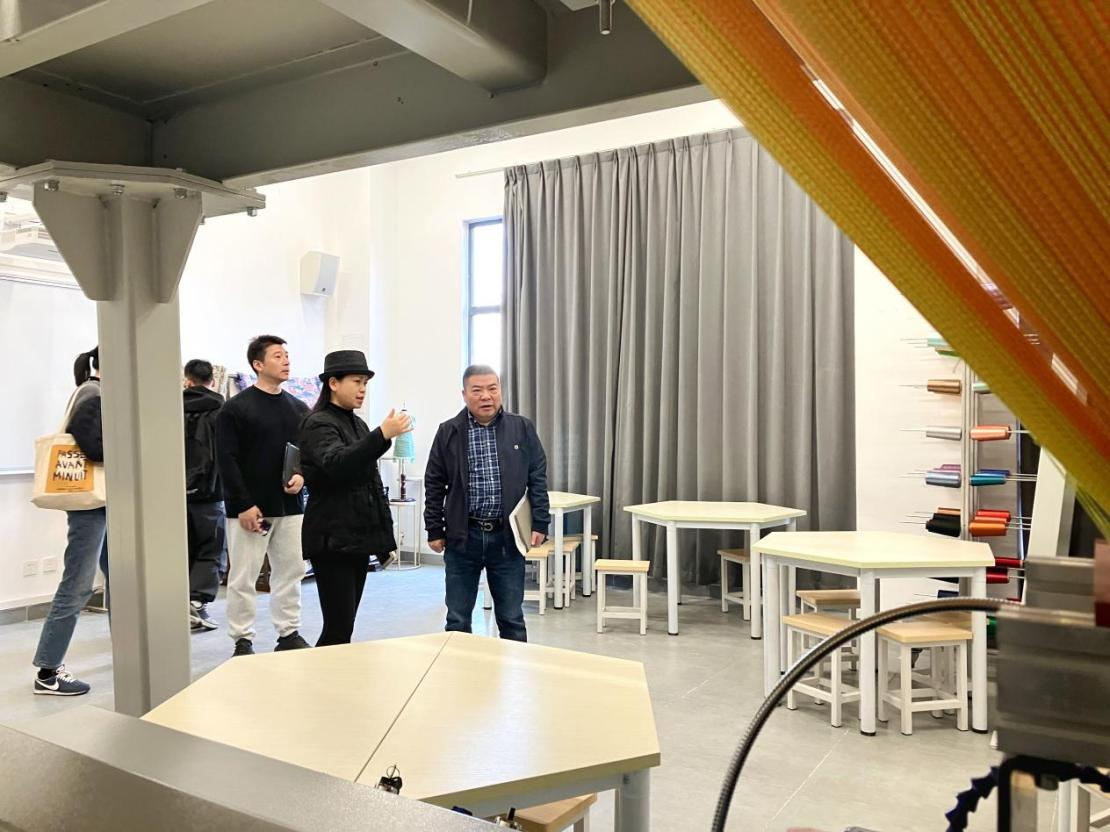 为深入贯彻落实习近平总书记关于对口支援、东西部协作、对口合作工作系列重要讲话精神,充分发挥“浙里石榴红”民族团结工作品牌重要作用,扩大西湖文化广场“铸牢中华民族共同体意识主题广场”影响,进一步促进民族交往交流交融,增强“五个认同”。新远集团就策划举办“浙里石榴红盛装华服秀”系列活动与服装学院开展交流座谈会。3月21日上午,浙江新远文化产业集团(以下简称“新远集团”)一行前往mk官方网站_mk(中国)(临平校区)服装学院调研。副院长须秋洁引导新远集团一行参观服装学院的国家级实验平台,服装设计与工程实验室主任丁笑君老师讲解。