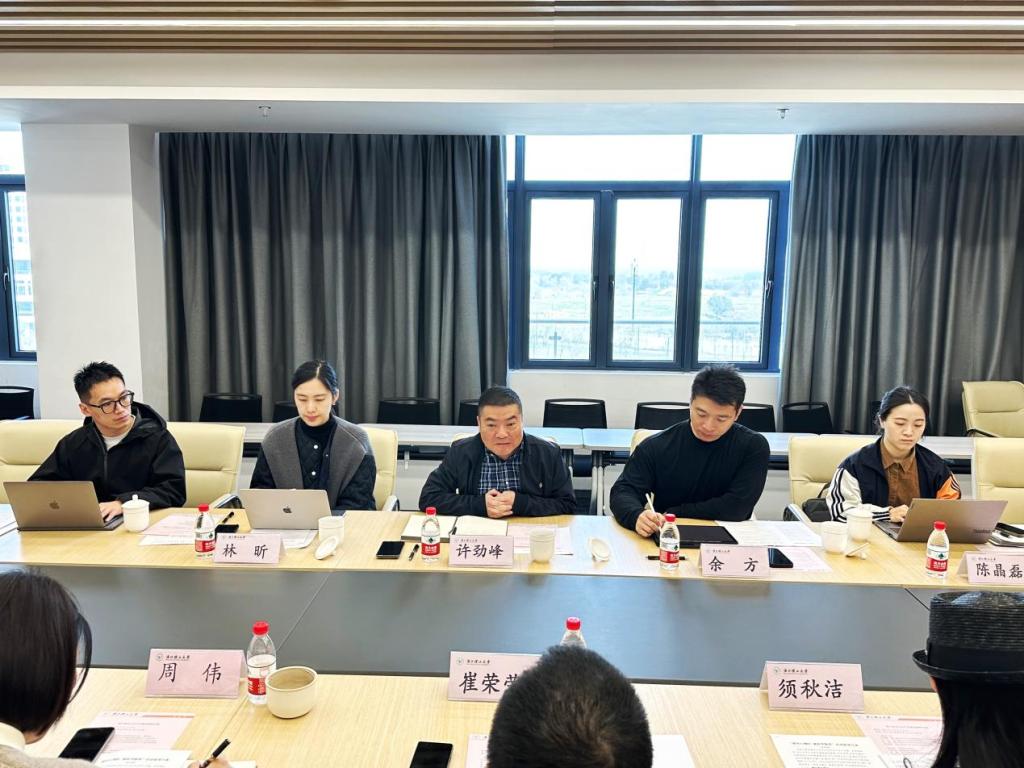 新远集团党委书记、董事长许劲峰,新远文化空间运营管理有限公司总经理余方,策划总监林昕,策划部经理陈晶磊;服装学院院长崔荣荣、副院长须秋洁、服装与服饰设计系主任周伟、副主任陈敬玉、教授夏帆、服装表演实验室主任麻湘萍、艺术与科技系教师佟季阳参会。院长崔荣荣主持会议,对新远集团一行的到访表示诚挚欢迎。