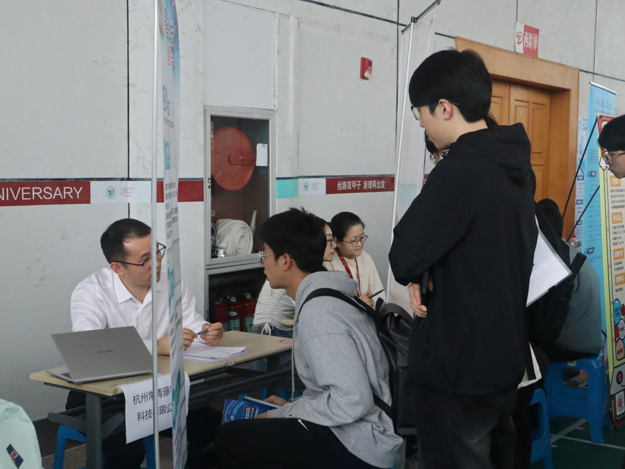 本次招聘会吸引了包括杭州海康威视数字技术股份有限公司、浙江宇视科技有限公司、浙江达峰科技有限公司(校友企业)等在内的60家单位,提供工作岗位数千余个,参与学生500余人。