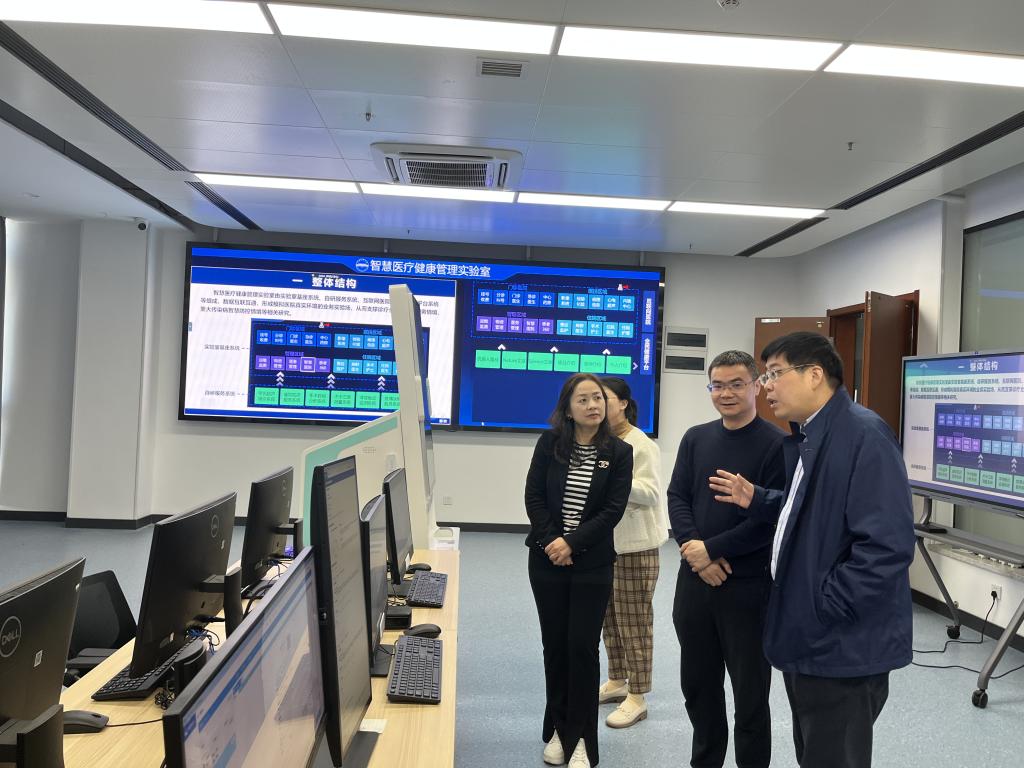 座谈交流后,姜元春副院长带领参观了智慧医疗健康管理实验室和智能制造工程管理实验室,深入了解了两个实验室建设的思路、主要建设内容以及建设取得的成果等方面内容。