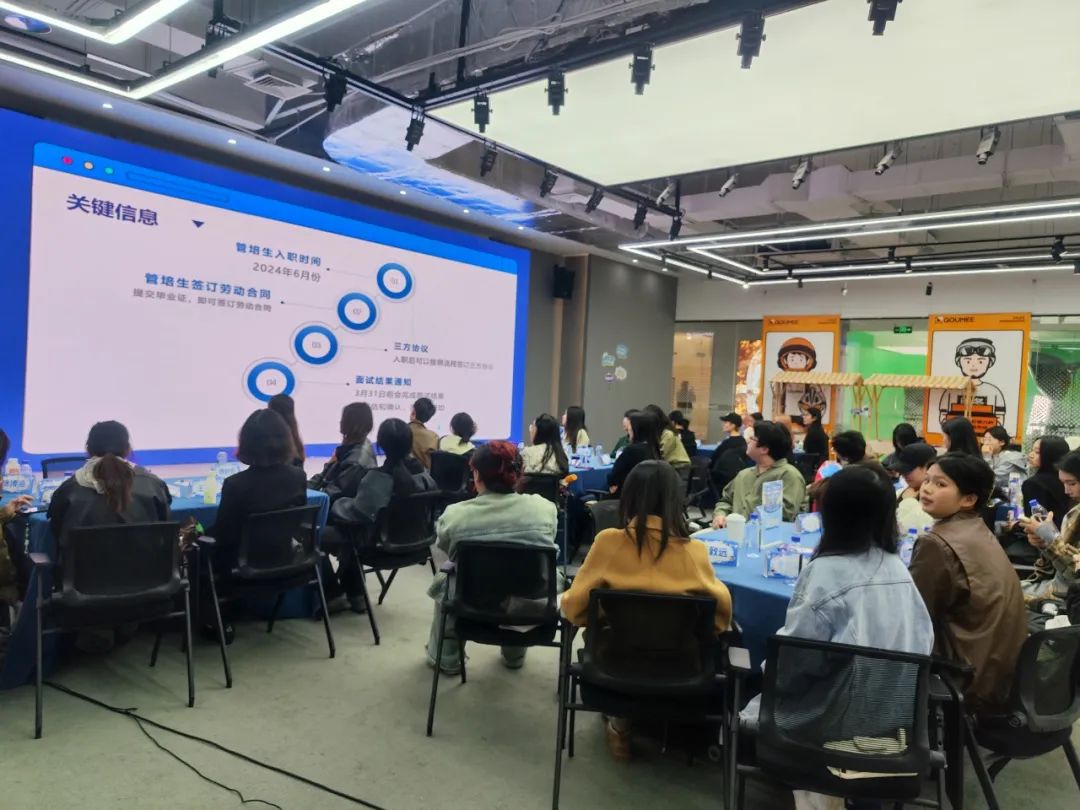 此外,此次活动还特别安排了在构美公司工作的校友,来自22届服装与服饰设计(中美合作)专业的张淑婷的面对面访问环节。她热情地分享了自己在构美公司的工作经历、成长历程以及取得的成就,为即将踏入社会的学弟学妹们提供了宝贵的经验和启示。