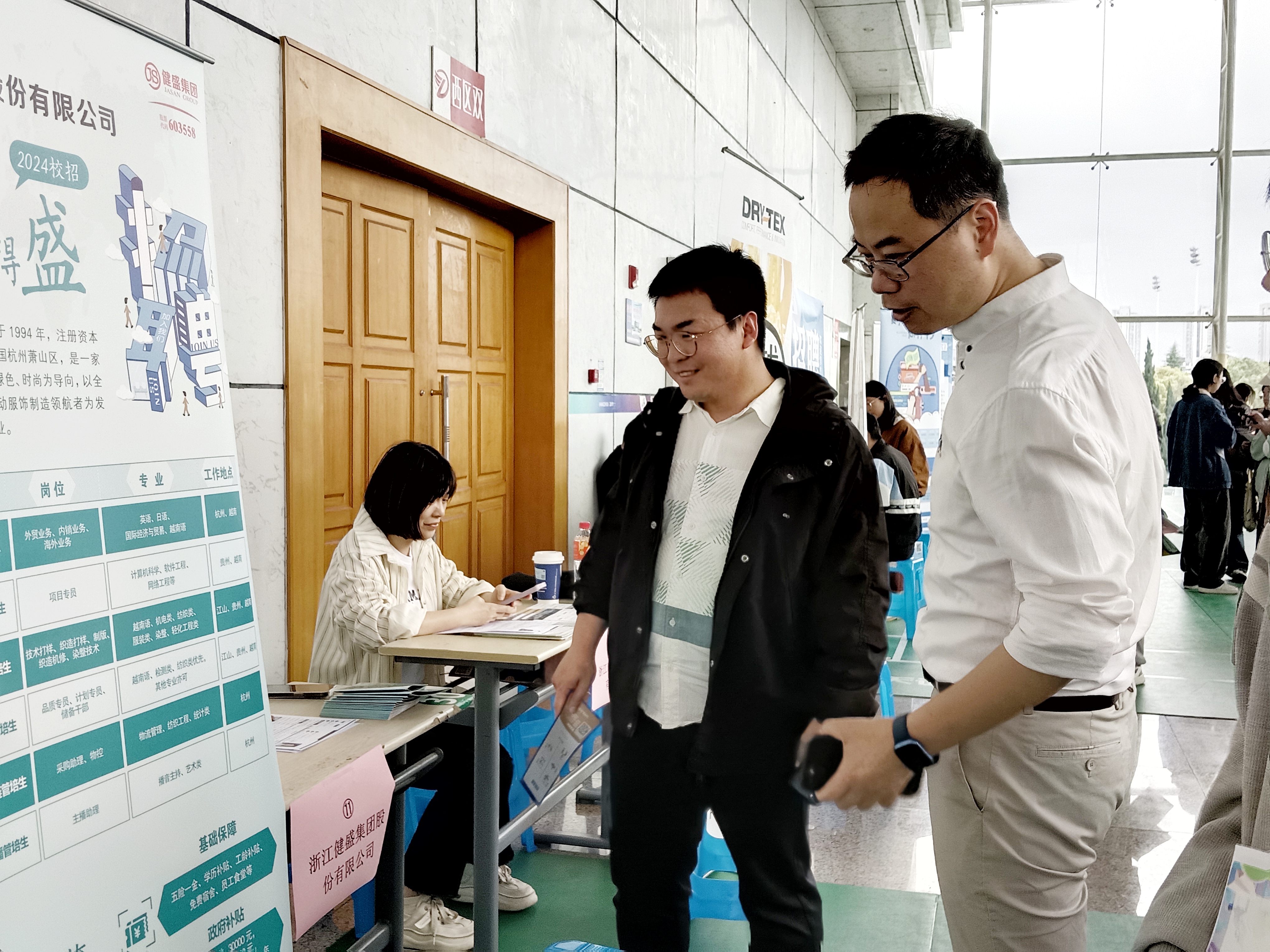 本次专场招聘会共有来自杭州、上海、苏州、嘉兴、绍兴等市及省外部分地区40家企业前来参会,其中包括浙江健盛集团股份有限公司、浙江荣盛控股集团有限公司等众多知名企业,为毕业生提供涵盖纺织工程、轻化工程、材料工程等相关专业777个优质就业岗位,岗位供需比达3:1。招聘会现场,毕业生们积极投递简历,主动了解用人单位情况。企业代表细致了解毕业生专项技能、科研经历和项目经验,并对同学们关注的薪资待遇、工作要求与环境等问题进行详细解答。据统计,现场投递简历400余份,双向选择意向率超过40%。学院老师与招聘单位进行交流,就如何优化岗位供给、增进互通、协同育人等进行交流,并进行情况统计与梳理。招聘会现场还设立“职等你来 简历问诊”专区,学院辅导员为同学们提供就业政策咨询、简历诊断指导和面试技巧提升等个性化专业服务,引导学生科学择业、积极就业,提高求职应聘能力。