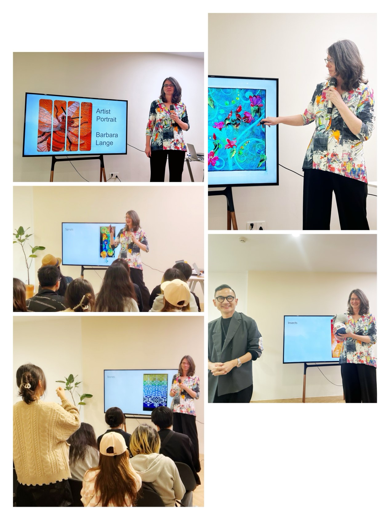 德国资深拼布艺术家Barbara Lange随后也分享了她对拼布艺术的独到见解,她探讨了拼布艺术与童装设计的结合点,展示了一系列相关的拼布作品,引发了在座师生和马拉丁品牌的设计师们深深共鸣。在互动环节中,Barbara Lange带领大家共同探讨拼布创作的灵感来源,为这种艺术形式增添了更深层次的理解和意义。
