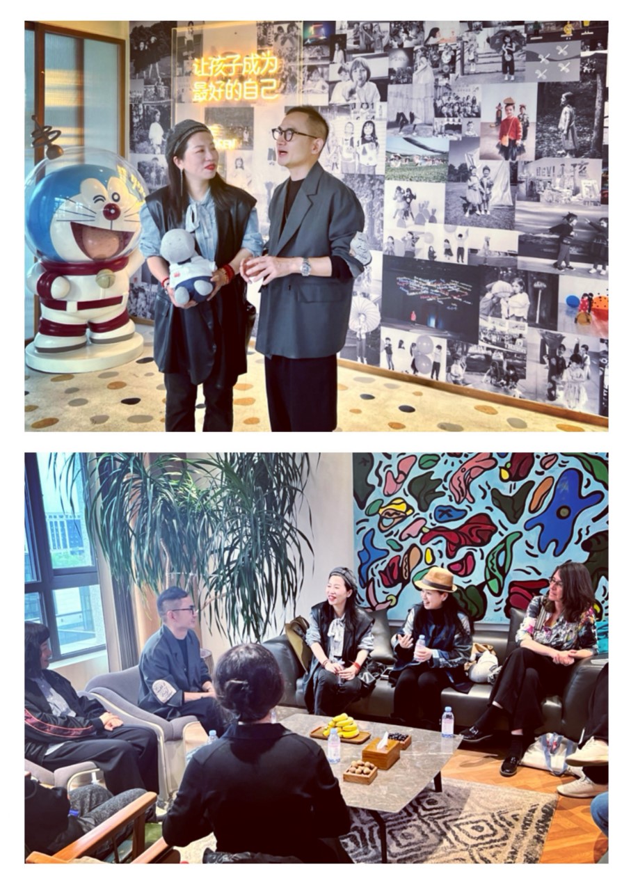 分享会后,Barbara Lange、须秋洁、陶静秋、服装学院的教师们,一起围绕关注孩子内心成长的话题,共同探讨童装设计的精神内涵。会后马叔叔与Barbara Lang就童装品牌联名合作进行了商讨,希望借此为儿童种下艺术的种子。须秋洁代表学院表达了希望通过与校企长期有效合作,推动拼布艺术的融合发展,为师生和校友们提供更好地资源共享的平台。