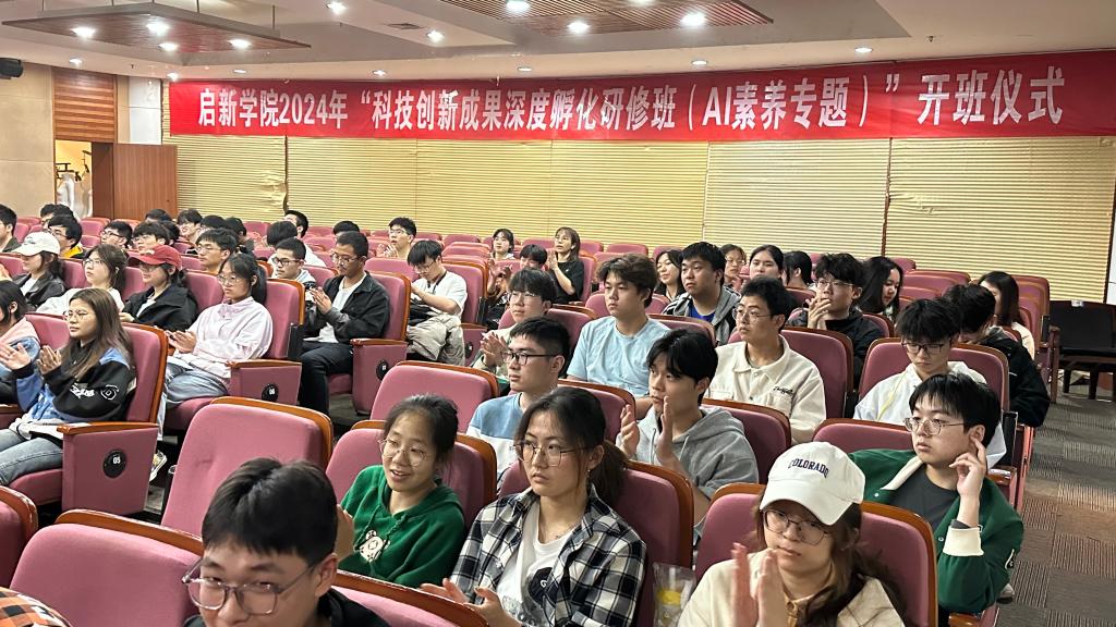 为持续推进我校高水平人才培养体系建设,探索建立新时期拔尖创新人才培养的有效机制,提升精英荣誉生在数字化时代的AI素养能力,培育跨学科视野,4月18日下午,启新学院科技创新成果深度孵化研修班(AI素养专题)在大剧院三楼报告厅正式开班。校教务处处长张伟,计算机科学与技术学院特聘教授赵泱泱、启新学院、创业学院党委书记吕媛媛等全体党政班子成员出席活动,学院2022、2023级学生参加活动。活动由副院长潘骏主持。