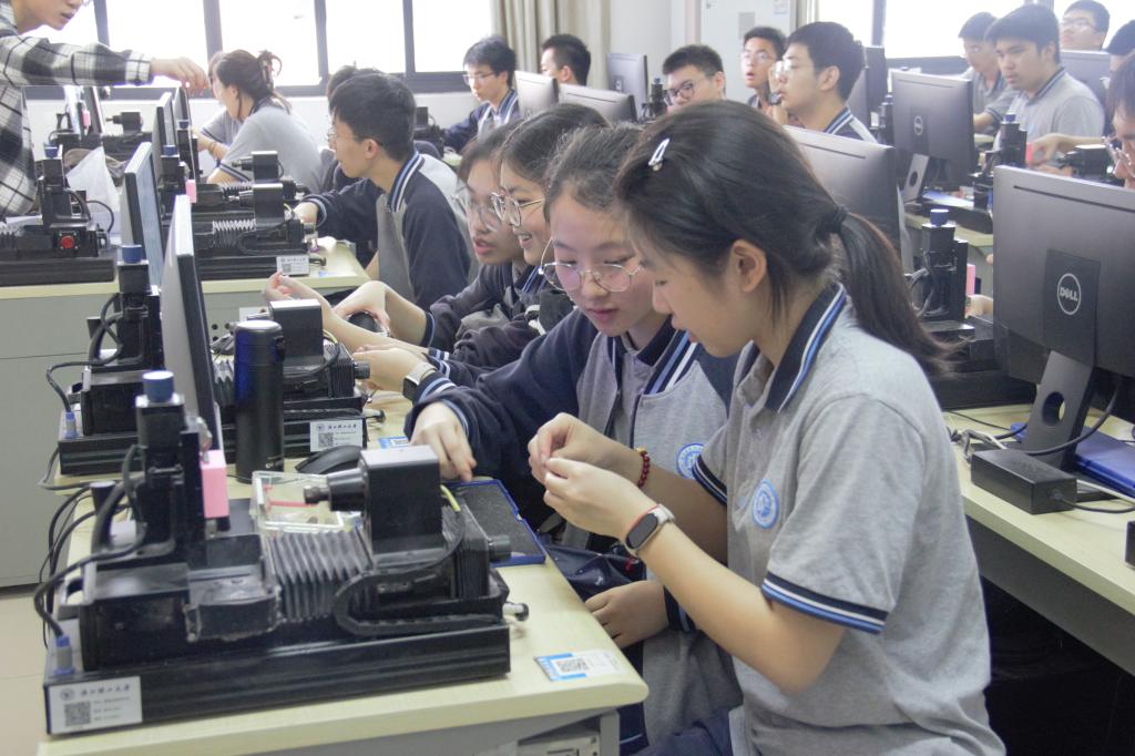 机械工程学院面向杭高钱塘学校的同学们开放了数字工匠坊,带领同学们了解了数控机床雕刻技术,在实践过程中,实验老师操作设备进行雕刻演示,其中展示的科技力量令同学们赞叹不已!同学们按照设计图案,操作机器设备,用数控机床雕刻出了精美图案,并在体验结束后获得了雕刻出的“浙理欢迎你”作为纪念品。