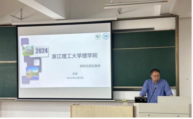 沈益介绍今年理学院研究生的招生情况。他表示目前考研形势依然严峻,考研调剂的难度逐年增加。希望同学们能够找到合适的目标与方向,在选择考研院校时切忌好高骛远。他向同学们介绍了理学院研究生导师团队,各项研究生奖学金和资助政策等内容,鼓励大家报考本校研究生。