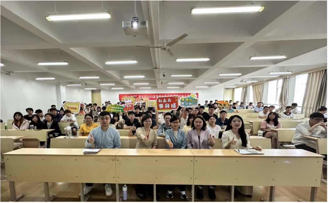 为进一步帮助学生了解考研形势,明确考研目标,增强考研信心,5月8日,理学院召开“研之有理”2025届本科生考研动员会,学院党委书记丁春平、党委副书记张孝凤、副院长沈益,各系教学负责人、辅导员、2024届考研优秀学生代表以及2021级全体学生参加。会议由学院学工办主任、团委书记王欣主持。