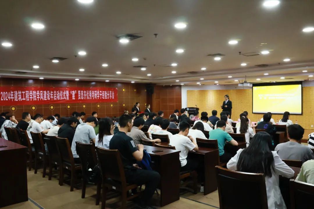 5月8日下午,建筑工程学院2024年度学风建设年启动仪式暨“建”贤思齐优秀考研学子经验分享会在行政楼一号报告厅及四个分会场顺利举行。建筑工程学院副院长杨博、建环系系主任吕超、学工办主任王欢欢、学院学风建设指导中心指导老师虞雅伦以及建环系校友奖学金捐赠人李浪浪、2010级建筑学校友厉少锋,2013级风景园林校友程飞彪、程红伟出席本次活动。