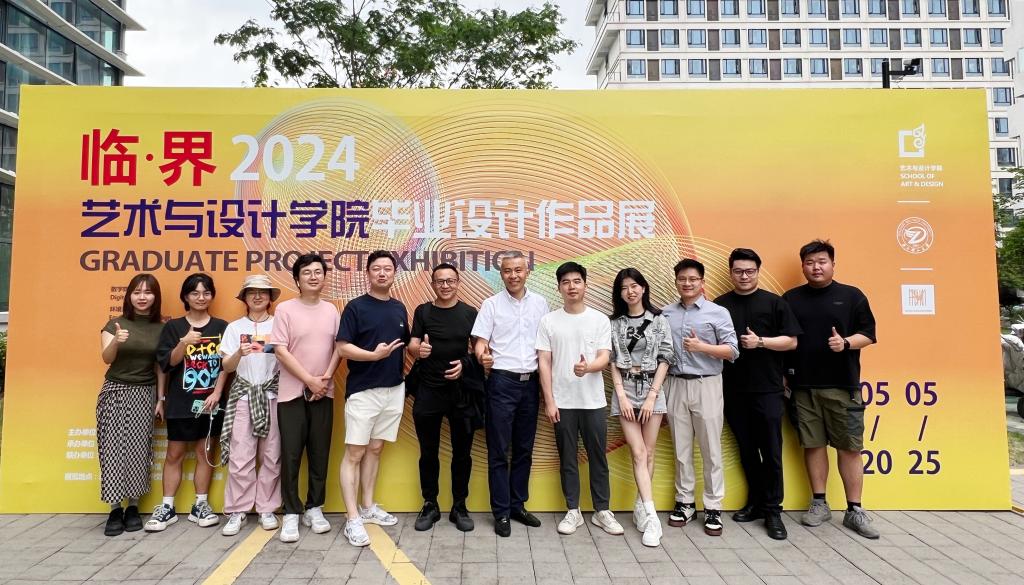 蒋建东、陈立旭、姚珺、章桂娣、童锦波、张伟、吕旻为2024届毕业设计展启动开幕