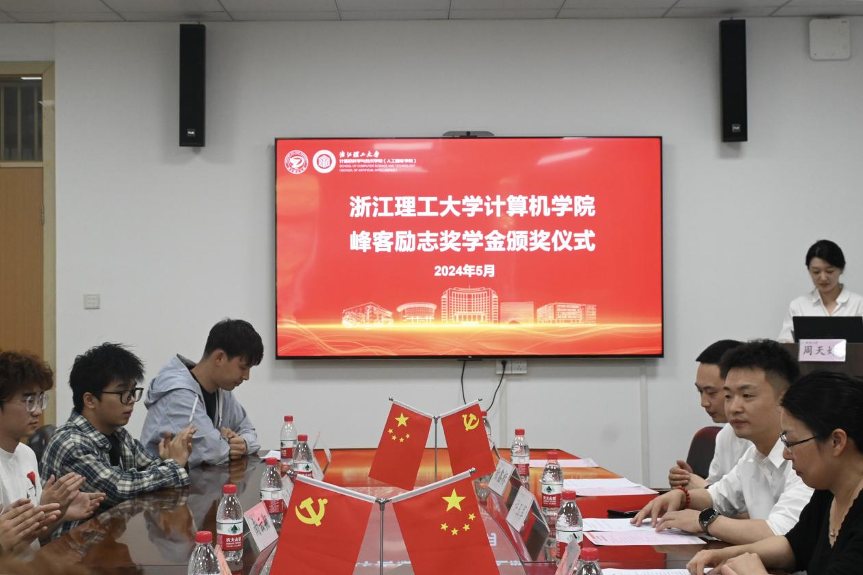 5月29日下午,mk官方网站_mk(中国)计算机科学与技术学院(人工智能学院)“峰客励志奖学金”颁奖仪式在下沙校区10号楼315会议室举行。浙江峰客电气有限公司总经理、2004级电子信息科学与工程专业校友许玉军、监事徐鑫标、人事行政主管王丽,计算机科学与技术学院(人工智能学院)党委书记黄黎、党委副书记丁宁出席仪式。仪式由学院学生资助工作指导老师周天姝主持。