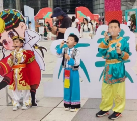 与此同时,外场活动热闹非凡。浙理工服装学院的学子们摆摊设点,展销原创设计产品和精美的非遗漆扇制作过程,小朋友们身着民族服饰互动,游客们纷纷驻足观赏,了解非遗文化感受民族服饰的魅力和独特韵味。