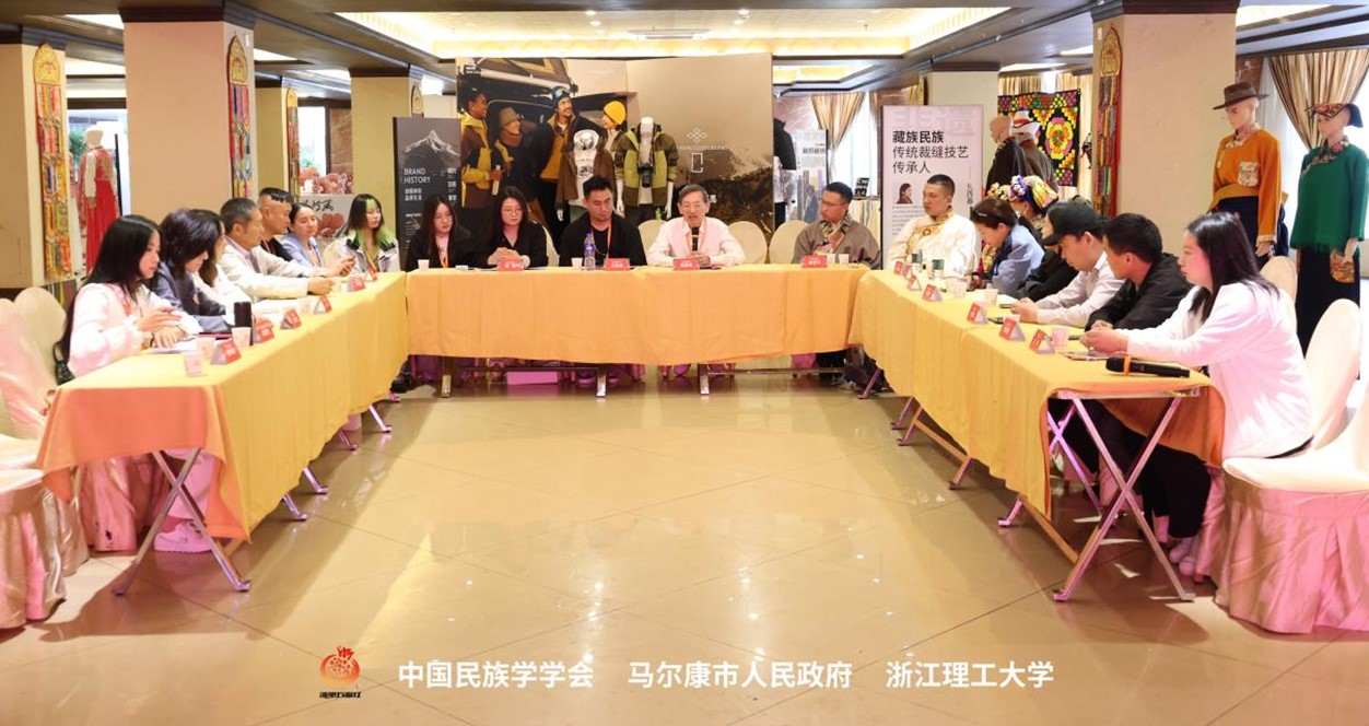 作为2024年中国民族学学会民族服饰研究分会年会的重要内容之一,时尚品牌与嘉绒藏族传统服饰融合创新成果展及设计师与非遗传承人的“三交”研讨会于5月25日在马尔康嘉绒大酒店举行。会议由mk官方网站_mk(中国)服装学院特聘副研究员王志成主持,参加本次研讨会的主要成员是11家东西部地区的品牌设计师和非遗传承人。中国民族学学会秘书长孔敬,中国艺术研究院教授李宏复、阿坝州羌学学会常务副会长刘志高,民族服饰研究分会常务副会长、mk官方网站_mk(中国)教授夏帆,副教授严昉、李欣华、冯燕娜等参加座谈,胡扬老师负责音控和场控。