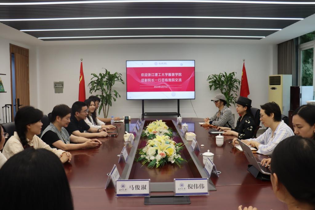 上午,服装学院一行首先来到温州大学美术与设计学院,与美术与设计学院副院长胡文超、陈明艳教授、服装与服饰设计系、服装设计与工程系、鞋履与皮具设计实验室等多位教师作产业科研协同深入交流,双方对各自学院发展近况作简要分享,展示各自特色教学成果,就结合区域经济特色、与本地企业开展紧密产教融合、艺工结合、教学与实践相长等方面达成一致。