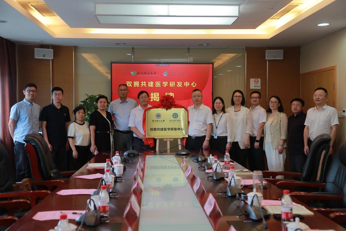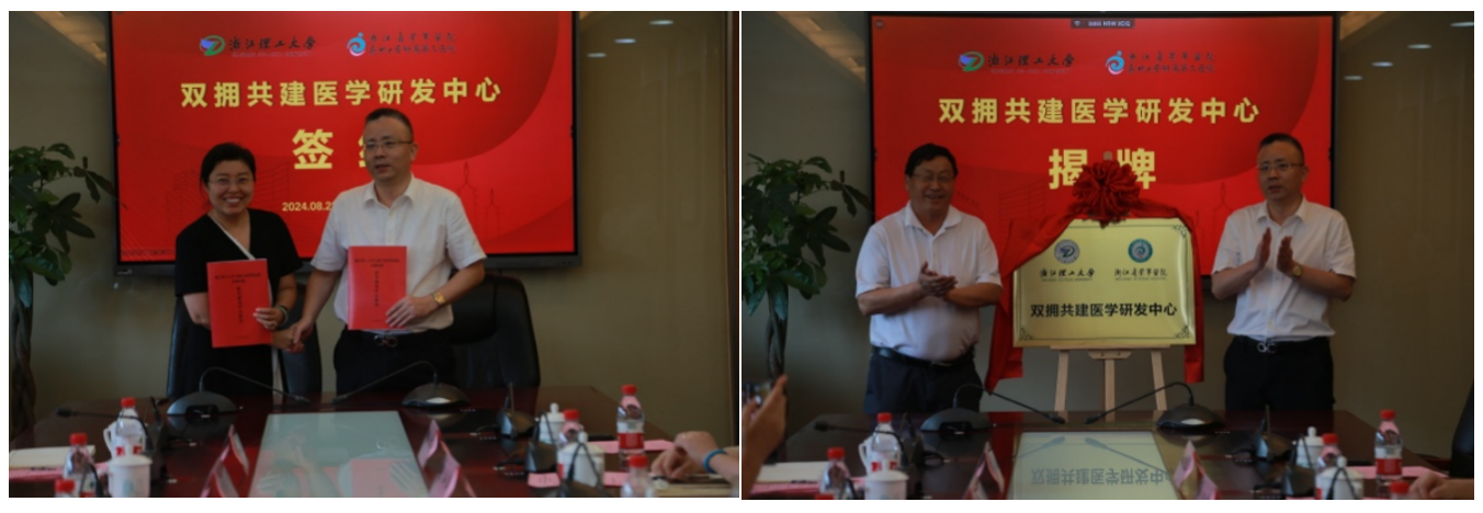 张新根致欢迎词,在座谈交流中,张新根、梁宗锁、付彩云先后介绍了浙江省荣军医院、生命科学与医药学院的发展情况、医校共建模式和路径,校、医双方围绕重点学科、科创平台、人才培养等方面开展深入交流。张新根和付彩云共同签约双拥共建医学研发中心,张新根和梁宗锁共同为研发中心揭牌。会后,mk官方网站_mk(中国)一行在张新根书记的陪同下,实地参观了医院退役军人康养新大楼、医疗综合楼等场所。