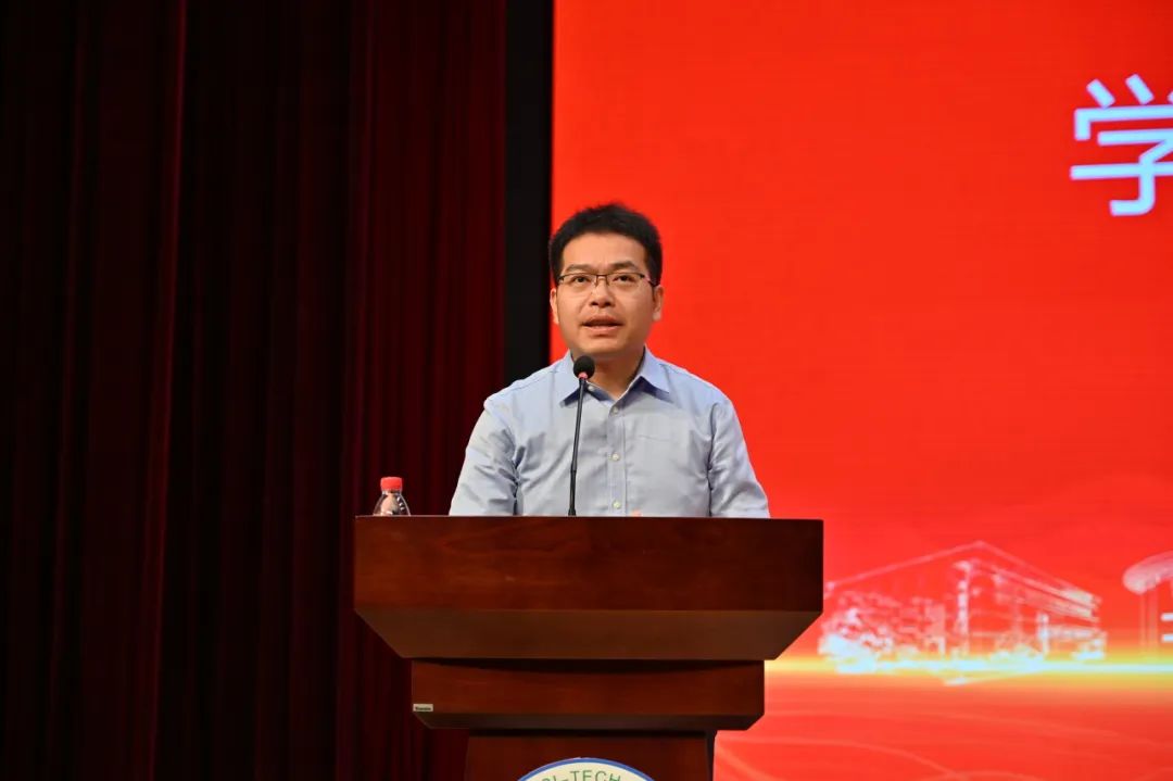 9月8日上午,理学院举行2024级新生开学典礼暨新生第一课。兴科化纤有限公司总经理、2013届校友、理学院“科超助学金”资助人岑科超,学院领导班子成员丁春平、张云波、王笃明、沈益、郭道友,各系主任、三办主任以及理学院2024级新生班主任、辅导员、2024级全体新生出席典礼。典礼由学院党委副书记、纪委书记张孝凤主持。