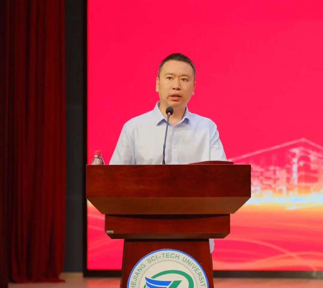 学院教师代表、服装设计与工程系主任杨允出,寄语广大新生要慢慢学会独立,认真对待每一门课,尽早确定人生规划,期待着与同学们一起成长,一起探索,一起创造属于浙理人的时尚传奇。
