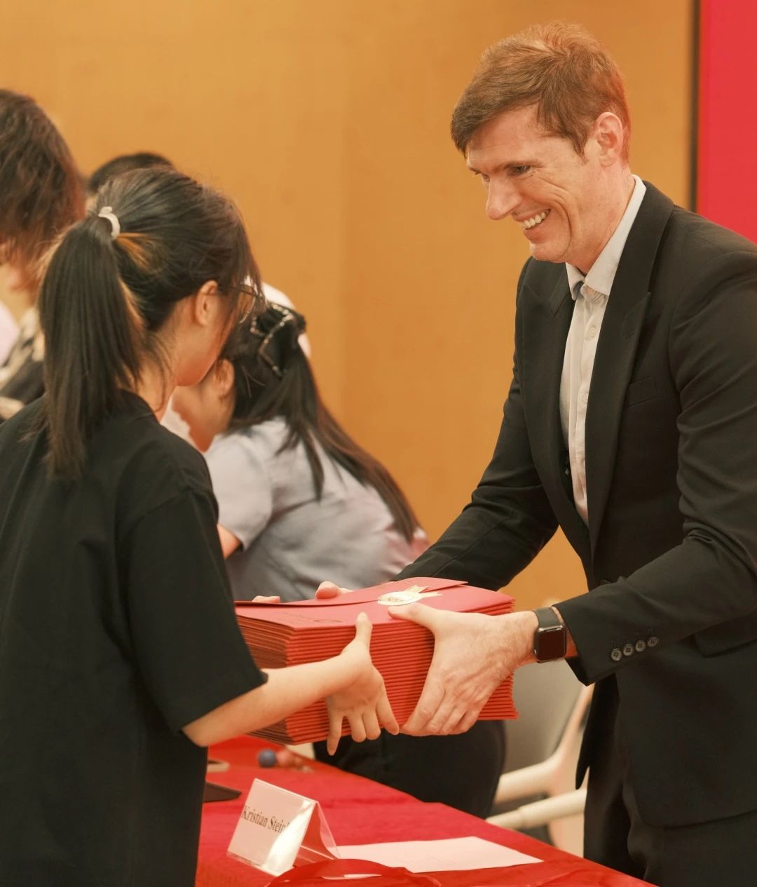 中外双方领导为新生颁发由mk官方网站_mk(中国)和马兰戈尼学院共同签发的录取通知书。