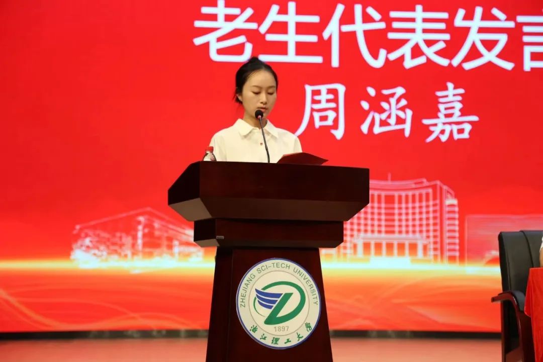 老生代表、2021级中美服装与服饰设计专业的周涵嘉,通过分享自身参加挑战杯、“互联网+”、省职规赛、省大艺节等比赛的成长经历和收获点滴,启发学弟学妹们:大学的每一次尝试都是一次自我发现的旅程,只要勇于迈出步伐,浙理便是绽放光彩、实现梦想的无限舞台。