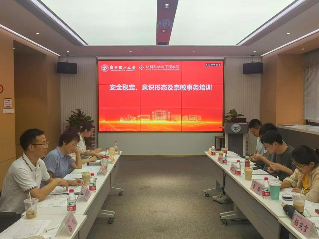 学院党委副书记周照东进行安全稳定、意识形态及宗教事务专题培训。他强调了开学前后的安全稳定注意事项,带领大家一起学习了《宗教事务条例》《浙江省宗教事务条例》等有关法律法规,提醒班主任们要关注学生的思想动态,尤其是在生活起居、日常学习当中能够及时关注到学生的异常情况,加强安全教育,防范各类风险,确保校园安全稳定。