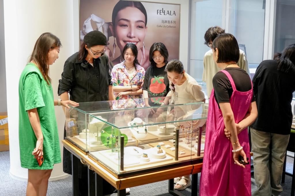 胡总带领师生们参观了翡拉拉经典产品线、品牌藏品、企业文化墙、珐琅工坊,介绍了掐丝珐琅、空窗珐琅、拉丝珐琅、画珐琅等工艺和手工制作的流程;产品研发经理刘昭何详细介绍了翡拉拉品牌的色彩基因、品控要求等产品核心语言,师生在观摩制作工艺和实物的过程中,沉浸式体验了设计师品牌的时尚叙事文化。