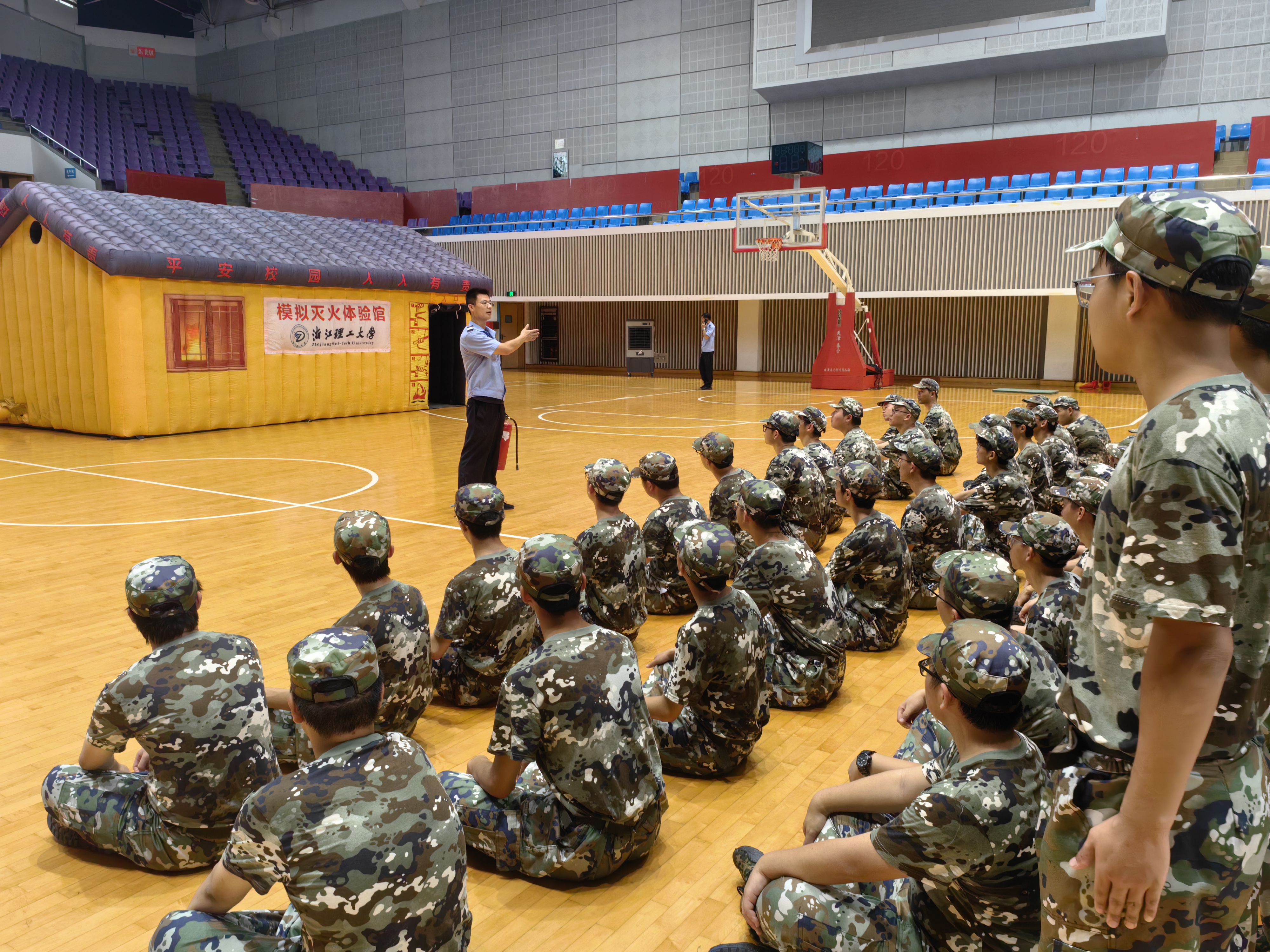 组织模拟逃生演练,增强安全实践能力。保卫处联合体育军训部,利用新生军训契机,在军训期间组织新生模拟逃生演练,利用消防模拟逃生屋和灭火体验馆,在各校区、分批次组织新生开展有计划、有针对性的安全教育体验活动,让每位新生入校时就学会“用知识守护安全,用技能捍卫生命”,让同学们了解并且熟练掌握突发火灾事件时的处理流程,以培养消防安全意识,增强逃生和自救能力。