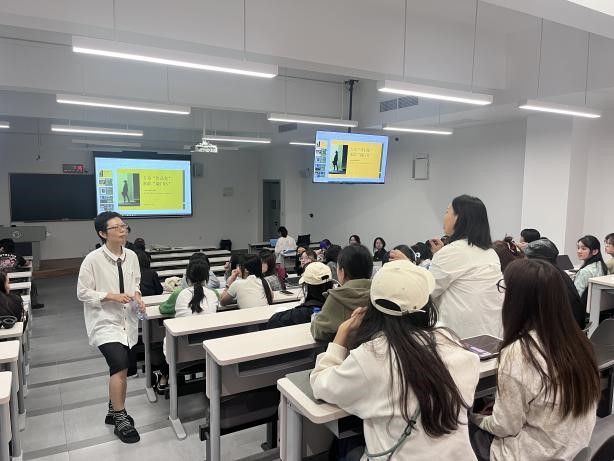 培训中,王颖深入讲解了求职简历的制作思路、作品集的展示技巧以及行业入门的实用经验,帮助同学们更好地了解职场、做好准备。她借用非墨亦墨品牌的日常设计,引导同学们思考有竞争力的作品集的必备元素。她提出作品集最首要的是训练思维,需要用思维梳理内容,用视觉呈现作品集,“思维、内容、视觉”三者构成了好的作品集,缺一不可。她鼓励同学们,丢掉千篇一律的模板,用思考去搭建作品集框架,再去进行作品的设计及准备,打造展示自身特色的作品集。
