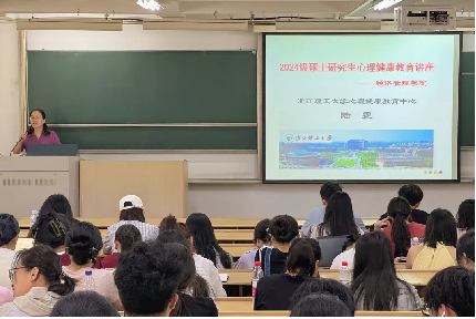 学校心理中心陆雯教授为学院24级硕士研究生新生带来了一场心理健康教育讲座,讲座聚焦于研究生阶段面临的种种心理压力与挑战,陆老师通过专业的讲解,为同学们提供了增强心理韧性、有效管理情绪的实用方法。