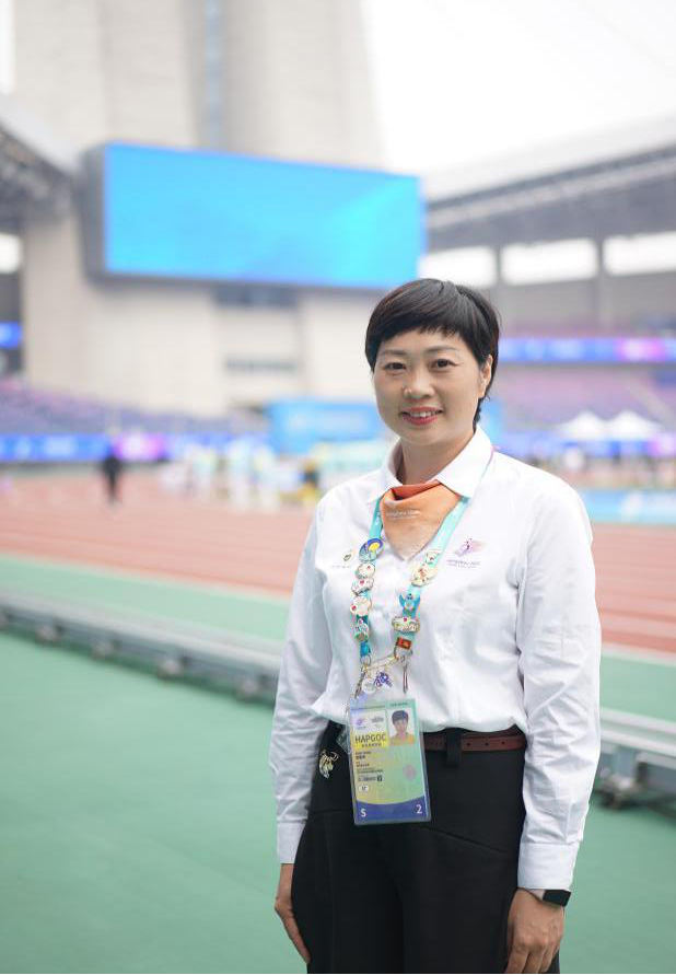 周意萍老师在田径裁判领域耕耘超过20年,积累了丰富的经验,具有专业的执裁水平,现为全国田径竞赛技术官员暨高级裁判员讲师,浙江省学校体育协会(大学部)田径分会裁委会副主任。周老师曾担任杭州第19届亚运会、杭州第4届亚残运会田径比赛技术官员,并多次受国家体育总局、中国田径协会、中国残奥委员会指派,执裁成都世界大运会田径测试赛、全国第九届、第十一届残运会、西安马拉松、亚洲田径大奖赛、中日韩田径对抗赛、全国田径锦标赛等大型体育赛事;执裁工作获得业界一致赞赏,二十余次获得“优秀裁判员”称号。