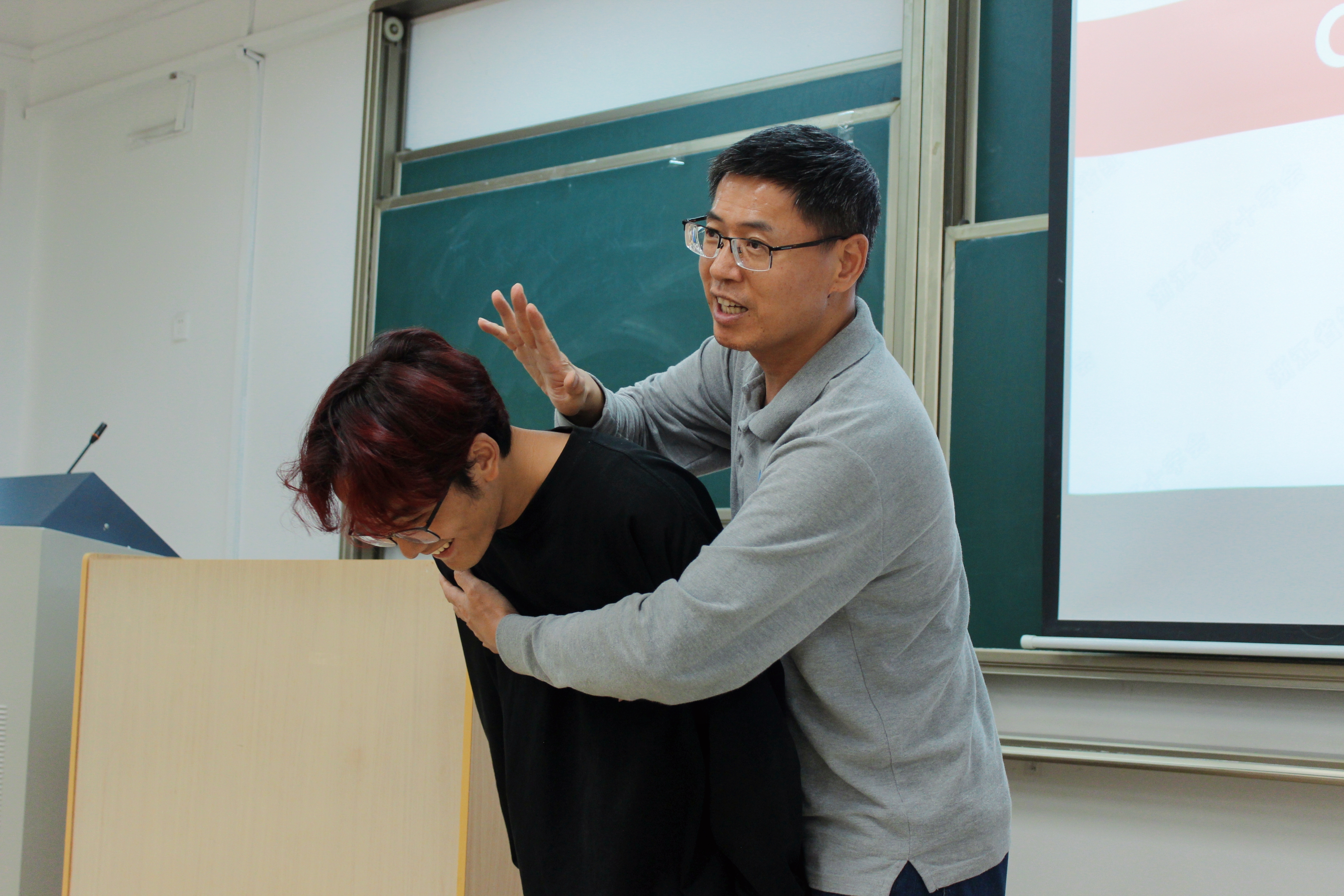首先由杭州蓝天救援队队长为同学们讲解海姆立克急救法,并让同学们积极参与到模拟过程当中,讲授在危机情况下,如何使用急救知识化险为夷。