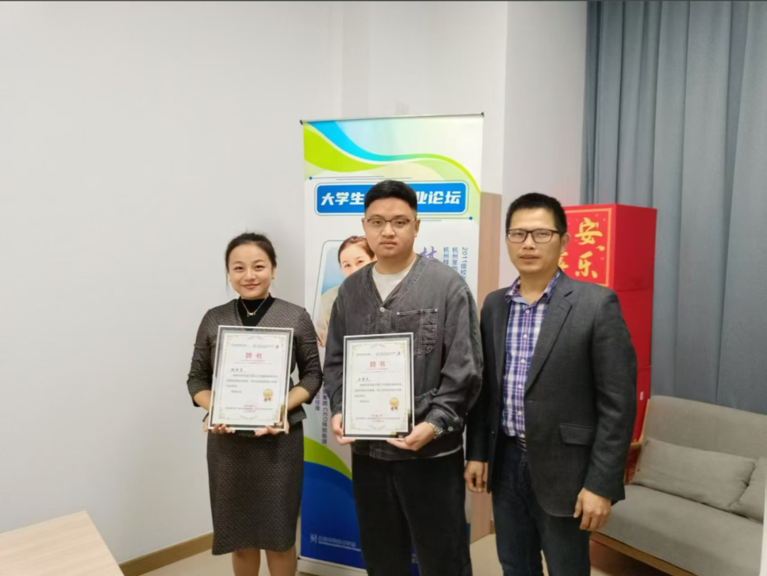 论坛伊始,学院党委书记吴跃峰,副书记阮财斌分别为四位校友颁发校友导师聘书。
