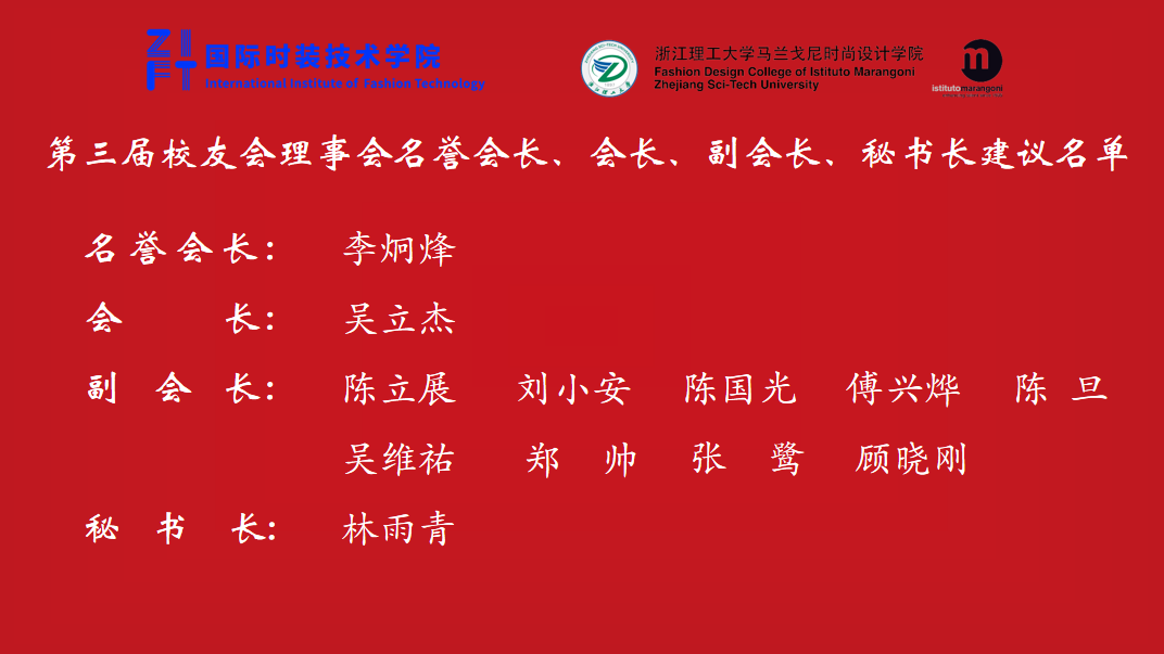 当天上午,国际教育学院、国际时装技术学院、马兰戈尼时尚设计学院校友理事会换届大会在临平校区7A-529召开。mk官方网站_mk(中国)对外联络办公室主任陈艳,国际教育学院、国际时装技术学院党委书记吴跃峰以及校友代表、师生代表参加会议。会议由学院党委副书记阮财斌主持。