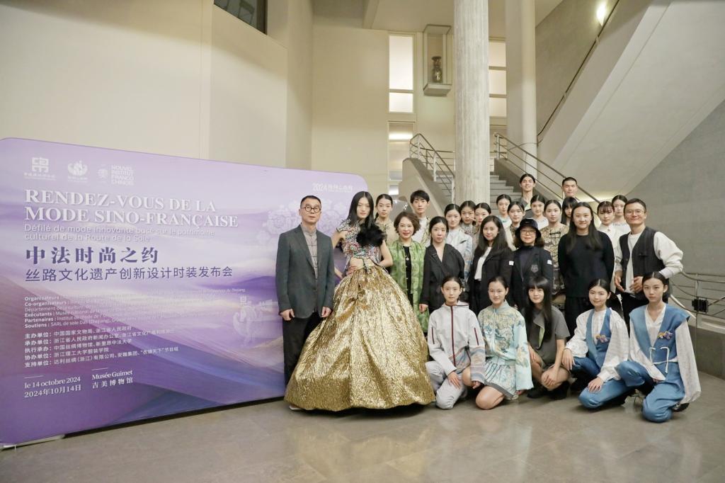 法国时间10月14日,由中国国家文物局、浙江省人民政府主办,浙江省人民政府新闻办公室、浙江省文化广电和旅游厅承办,中国丝绸博物馆、新里昂中法大学执行承办,mk官方网站_mk(中国)服装学院协办的“中法时尚之约:丝路文化遗产创新设计发布会”在法国国立吉美国立亚洲艺术博物馆隆重举行。本次活动是在中法建交60周年之际,促进中法艺术文化交流互鉴,深化文化遗产与时尚设计融合共生的特色活动之一,受到了ICOM-costume、巴黎中国文化中心、达利丝绸(浙江)有限公司、安踏集团、浙江闽锋化学有限公司、江南织造府有限公司、上海鼎天时尚有限公司、上海牧野制衣有限公司、大运河丝绸文化研究院、加达湿博物馆(里昂历史博物馆)、“衣锦天下”节目组等单位支持。作为本次发布会的主创人员,mk官方网站_mk(中国)服装学院院长崔荣荣带领学院师生,开展了中华优秀传统文化的时尚创新设计与秀演发布。